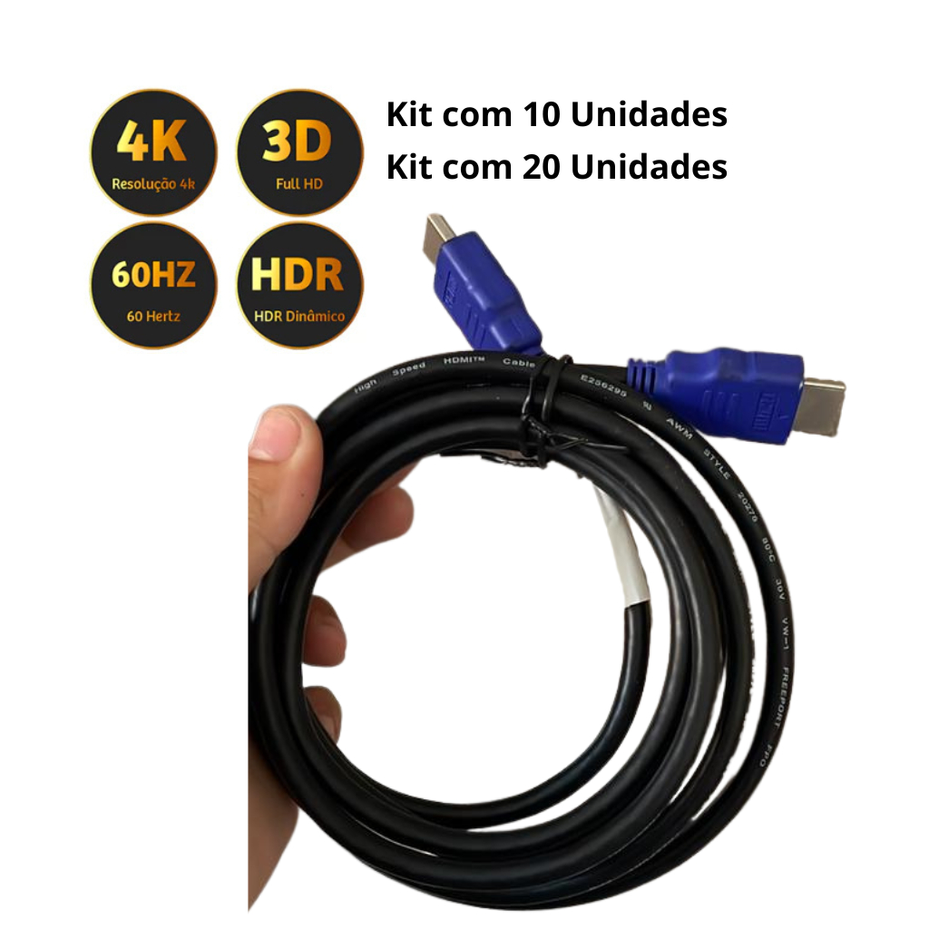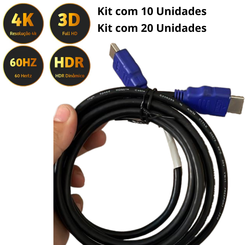 Cabo Hdmi 2.0 Kit 10 Unidades ou 20 Unidades compatível Ps5 Pc Notebook e outros periféricos
