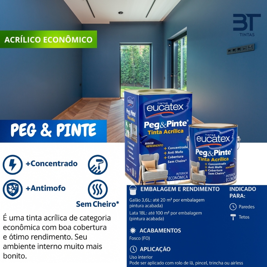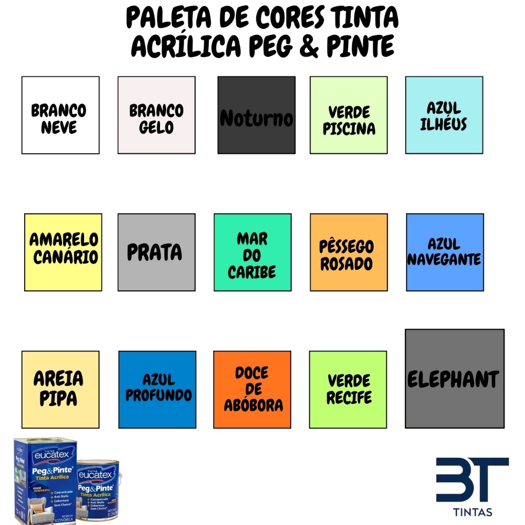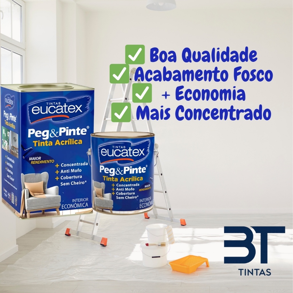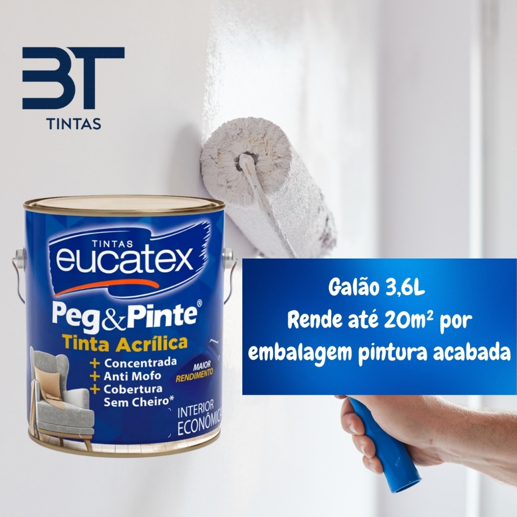 Tinta Acrílica Eucatex Peg & Pinte 3,6L Linha Econômica Anti Mofo Sem Cheiro Diversas Cores