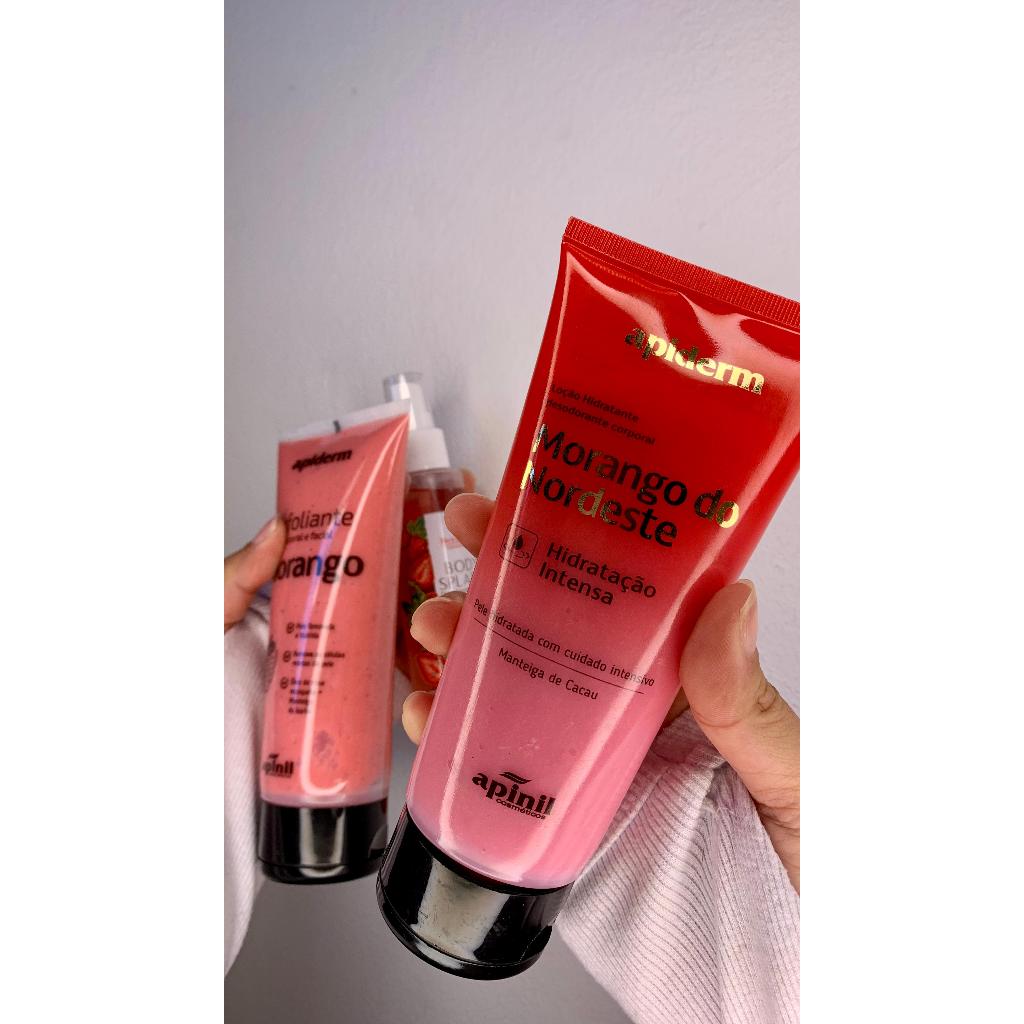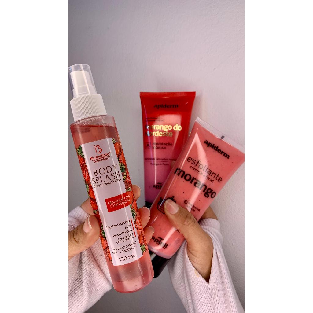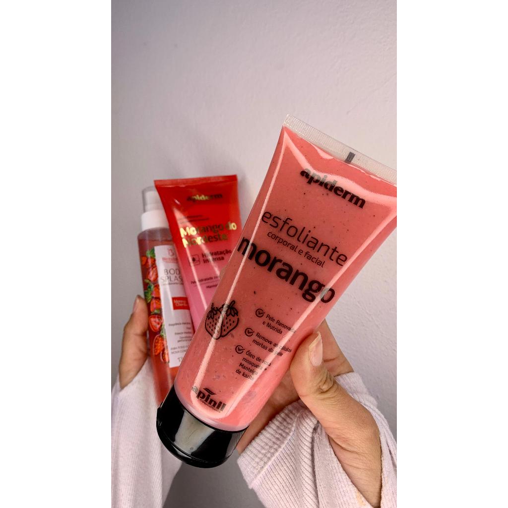 Kit Morango – Esfoliante Corporal e Facial + Hidratante Corporal + Body Splash Morango com Champagne
