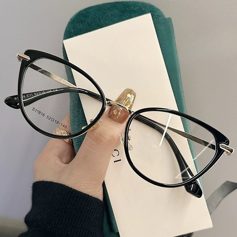 Europeu E Americano retro Olho De Gato Miopia Óculos Feminino Profissional Moda casual metal Planos Pequena Armação De A