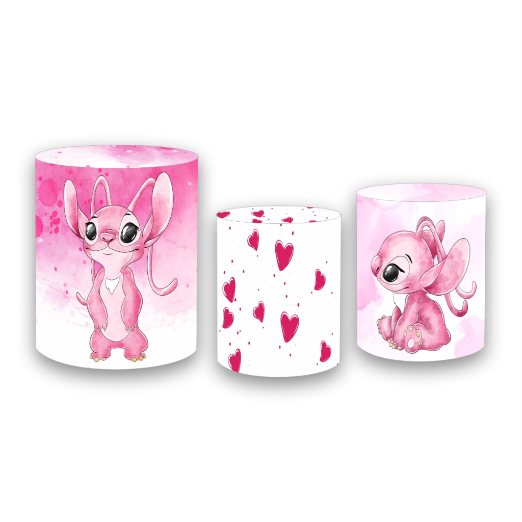 Kit Painel Redondo em tecido sublimado 1,5 + 3 Capas de Cilindros ANGEL LILO STITCH