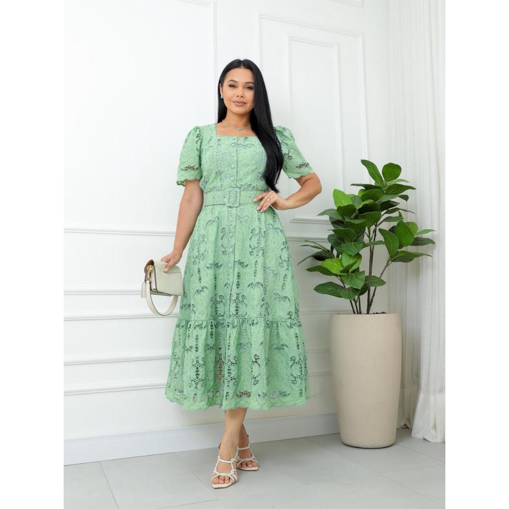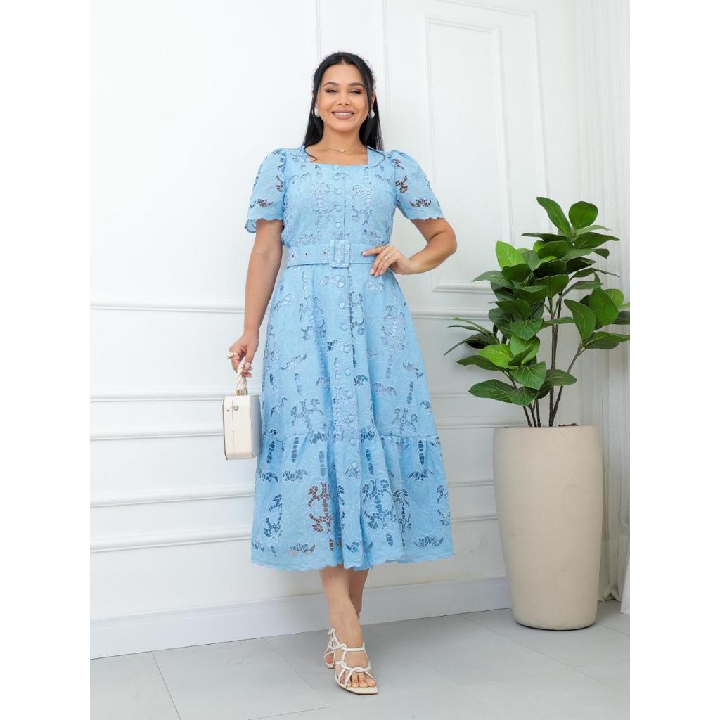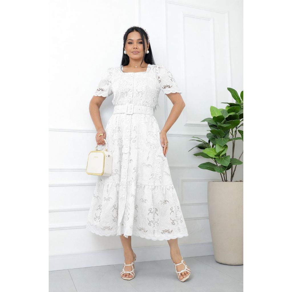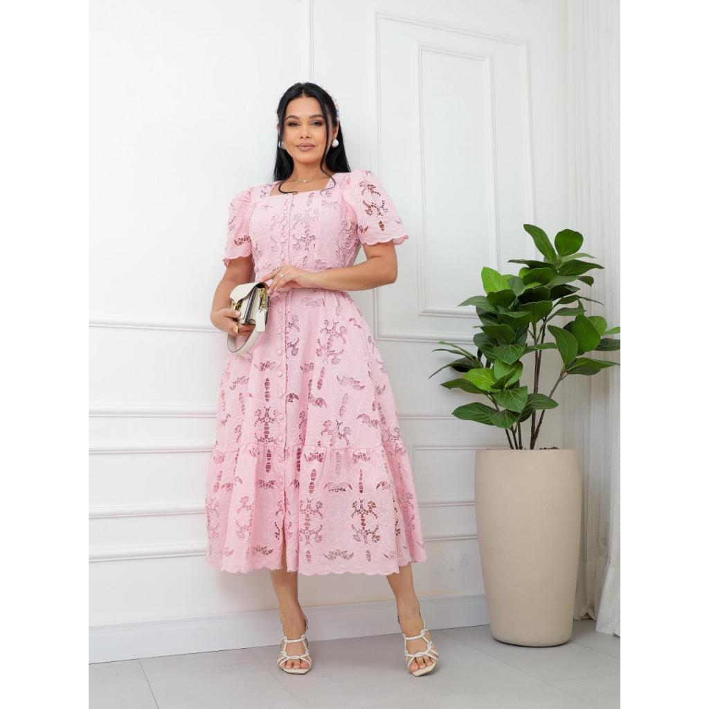 Vestido Midi Romântico Rosa com Forro e Detalhes Vazados