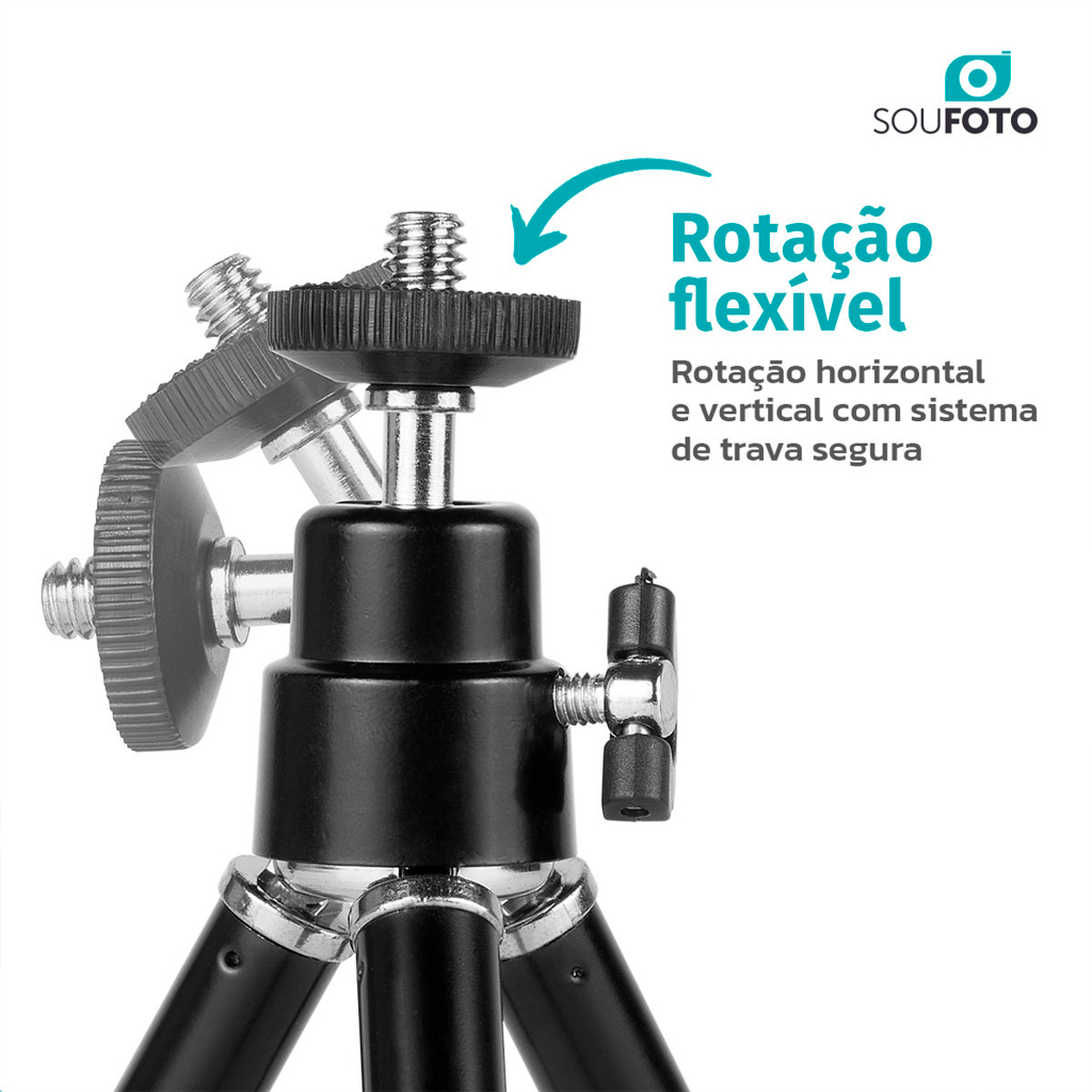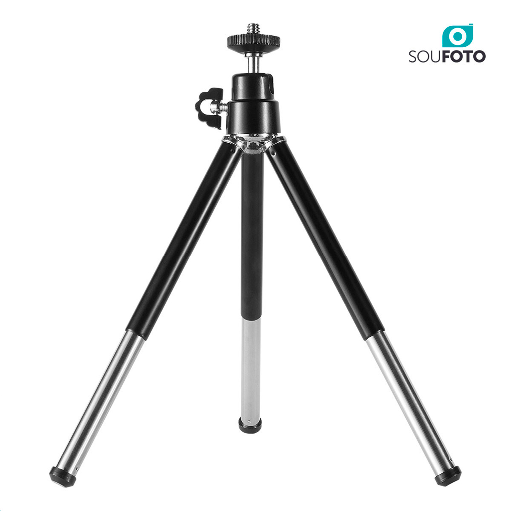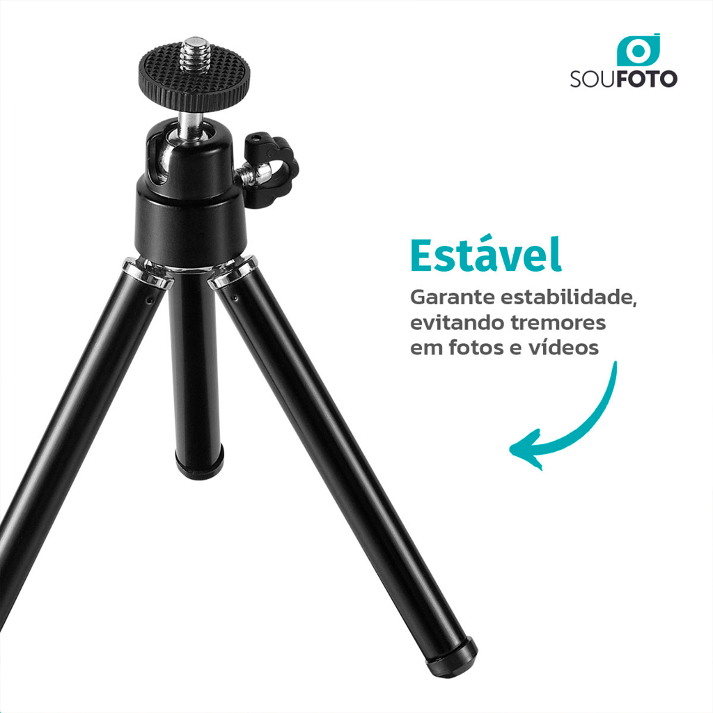 Mini Tripé De Mesa 20cm Sou Foto MTP-001 Para Câmera Webcam Duas Cores Preto E Prata