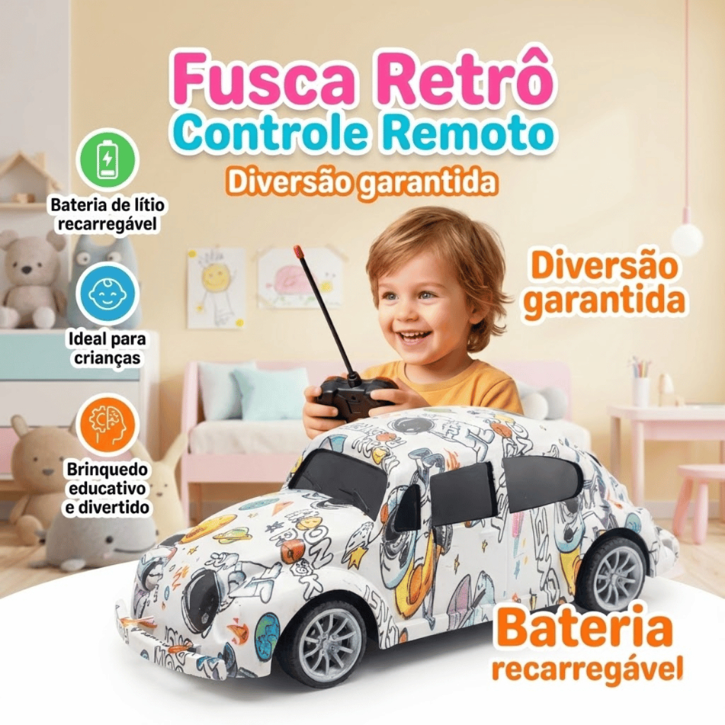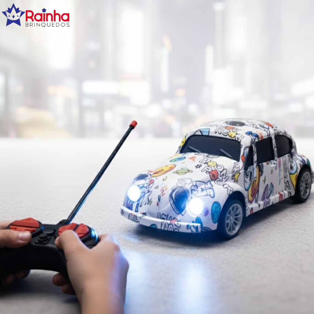 Carrinho Fusca Controle Remoto Infantil Luz e Movimento Brinquedo Fusca Retrô Resistente