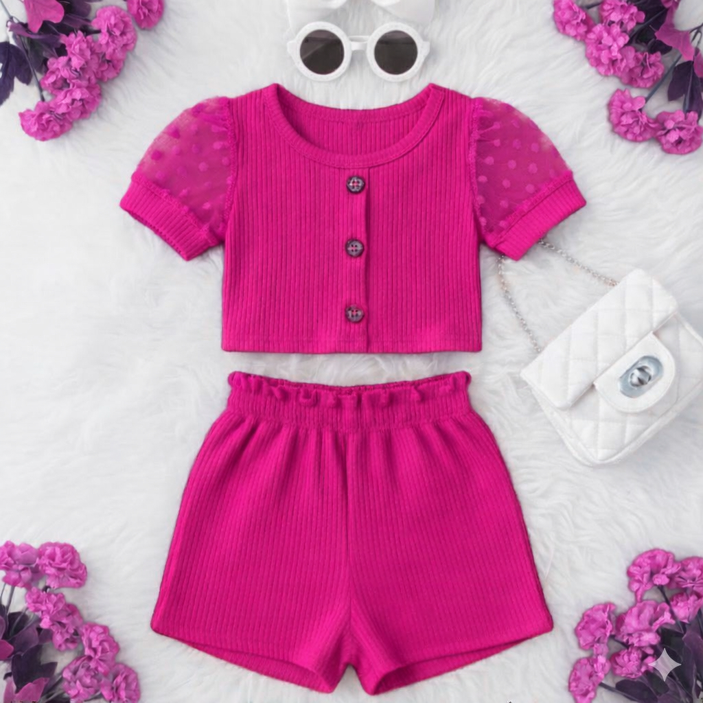 Conjuntinho Infantil de Tule e Canelado Super Estiloso