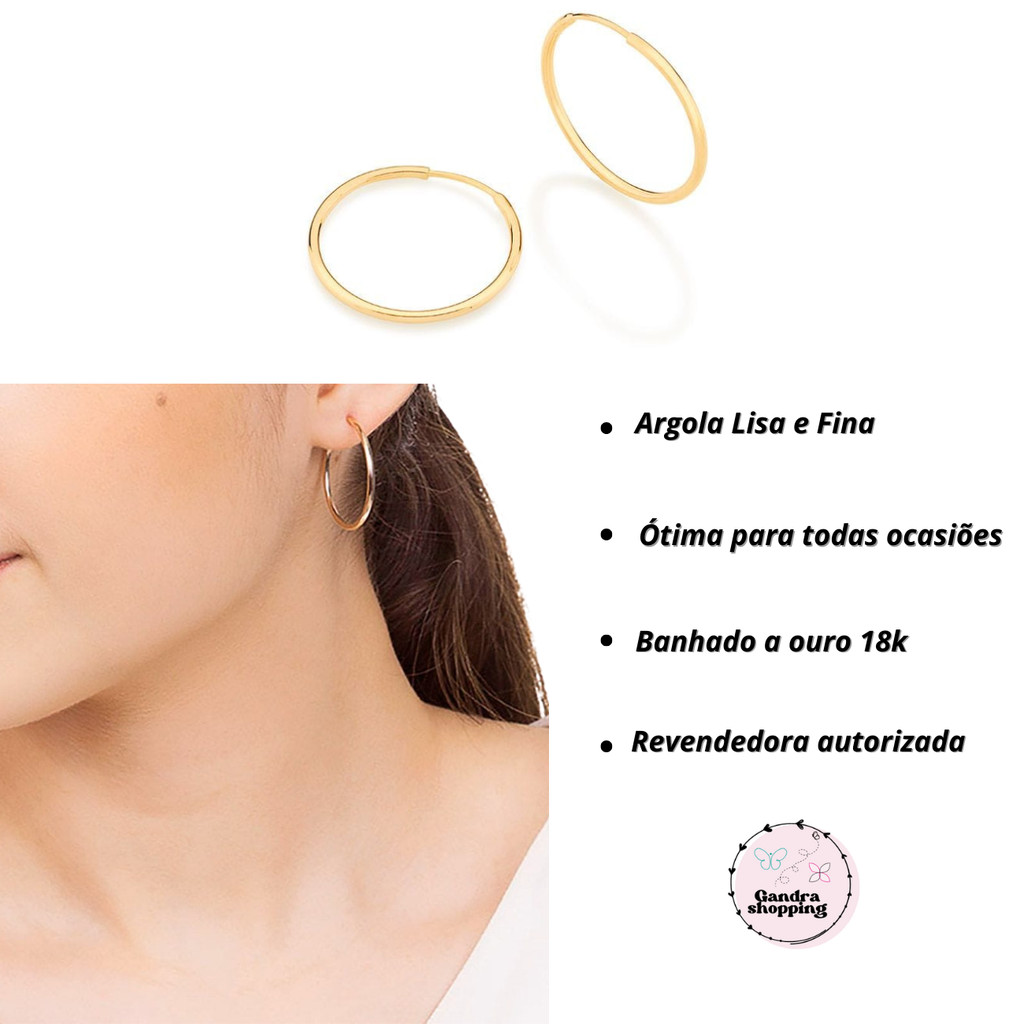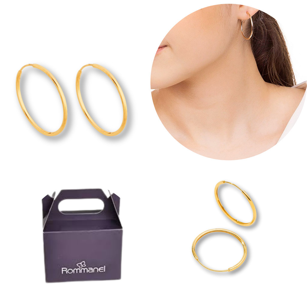 Brinco Argola Rommanel Fina Pequena. Med 2,5 Cm 522012 Original Folheado a Ouro