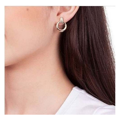 Brincos Rommanel Retangular Trabalhada Círculo Vazado 524677