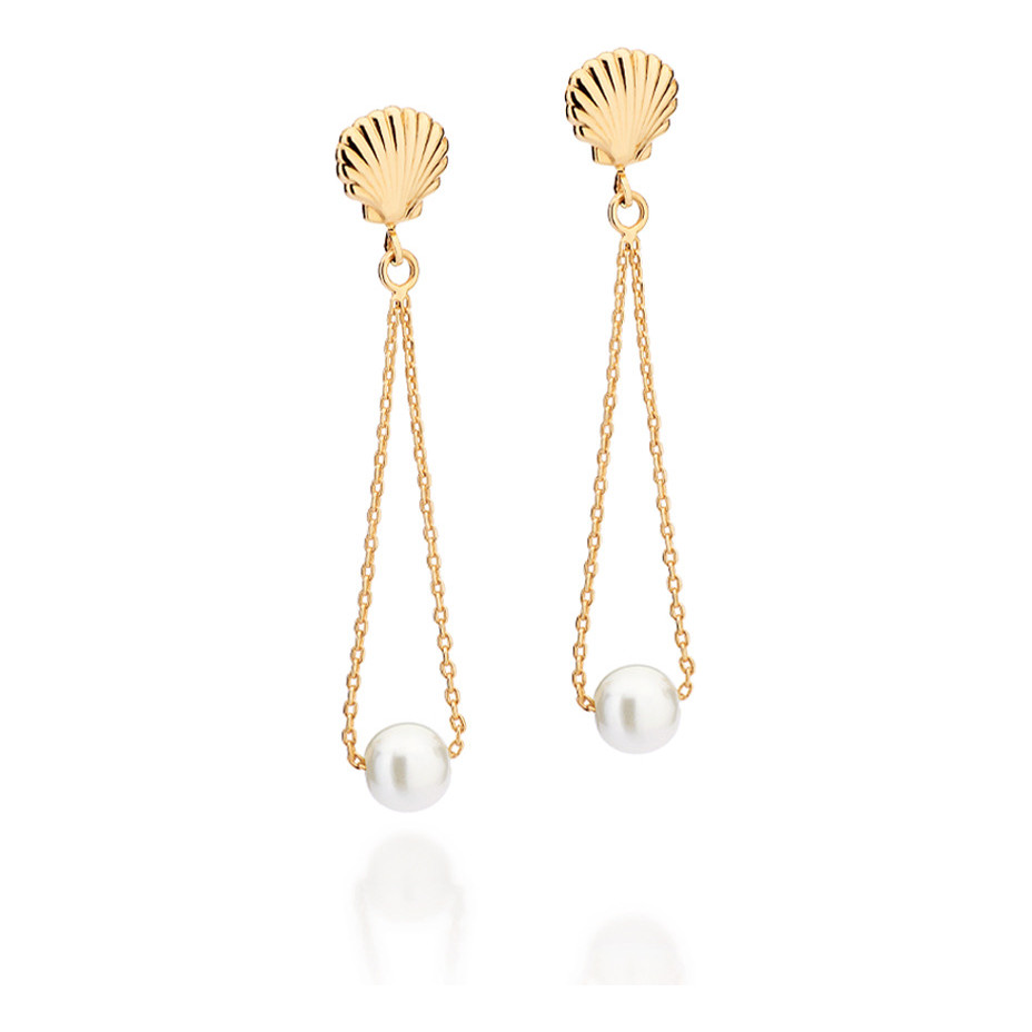 Brinco Rommanel Pêndulo Pérola Concha Banhado A Ouro 527520