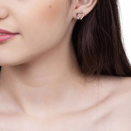 Brinco Rommanel Folheado Coração Vazado Com Cristal 524177