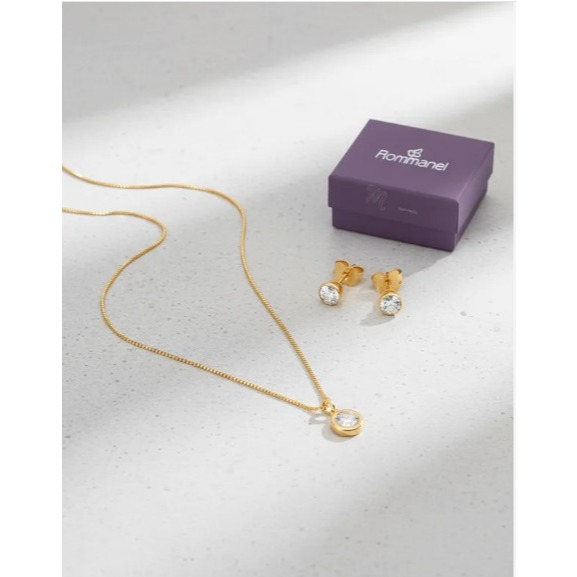 Conjunto Rommanel Corrente + Brinco Ponto Luz + Estojo Folheados a Ouro Original K03