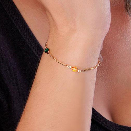 Pulseira Banhado Ouro Fio Elo Português Cristais Coloridos 551624