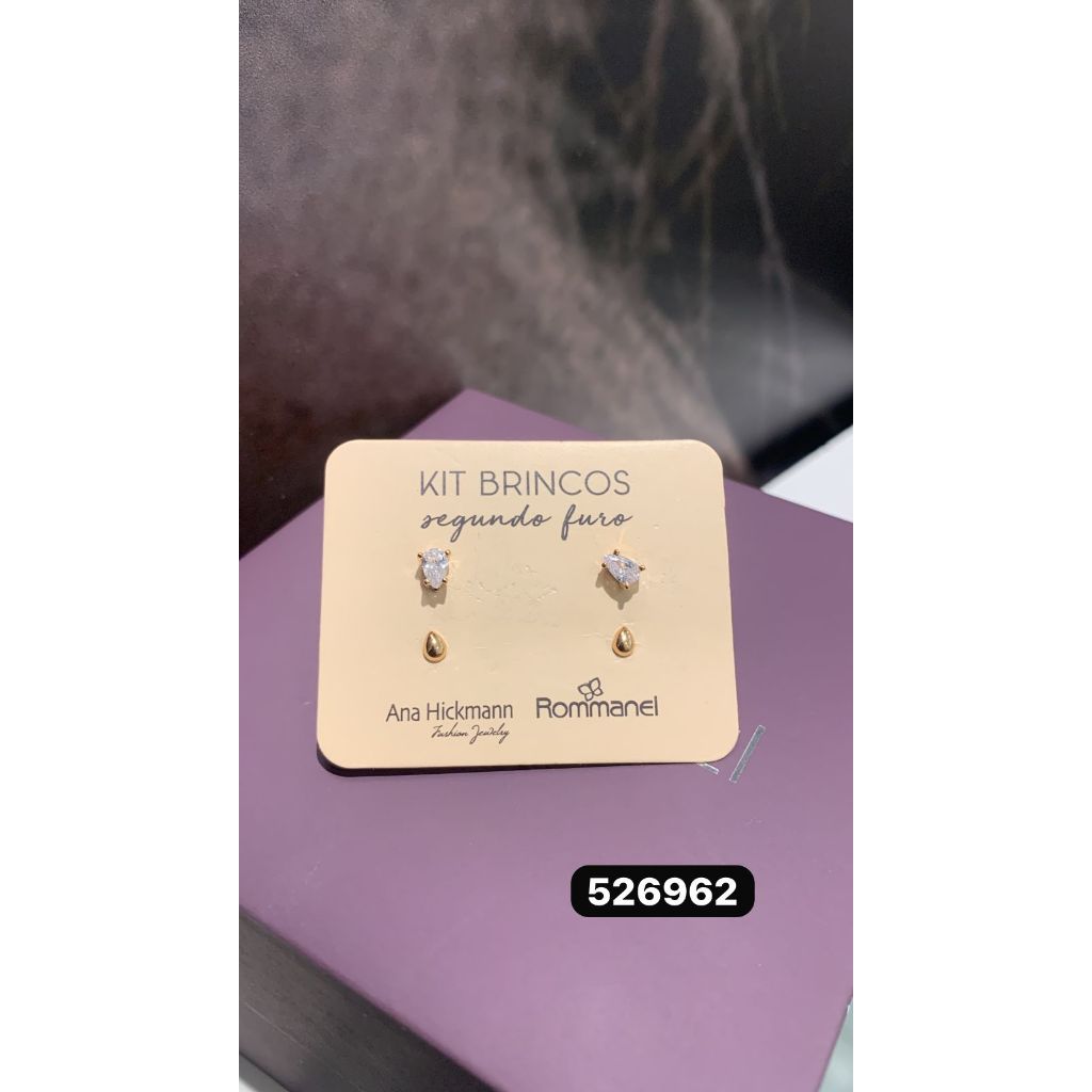 Kit Brincos Solitários Rommanel Ana Hickmann Folheado 526962