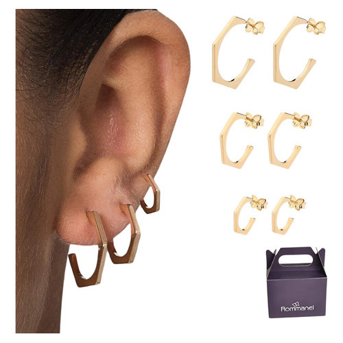 Brinco Argola Trio Angular Rommanel Folheado Ouro K150