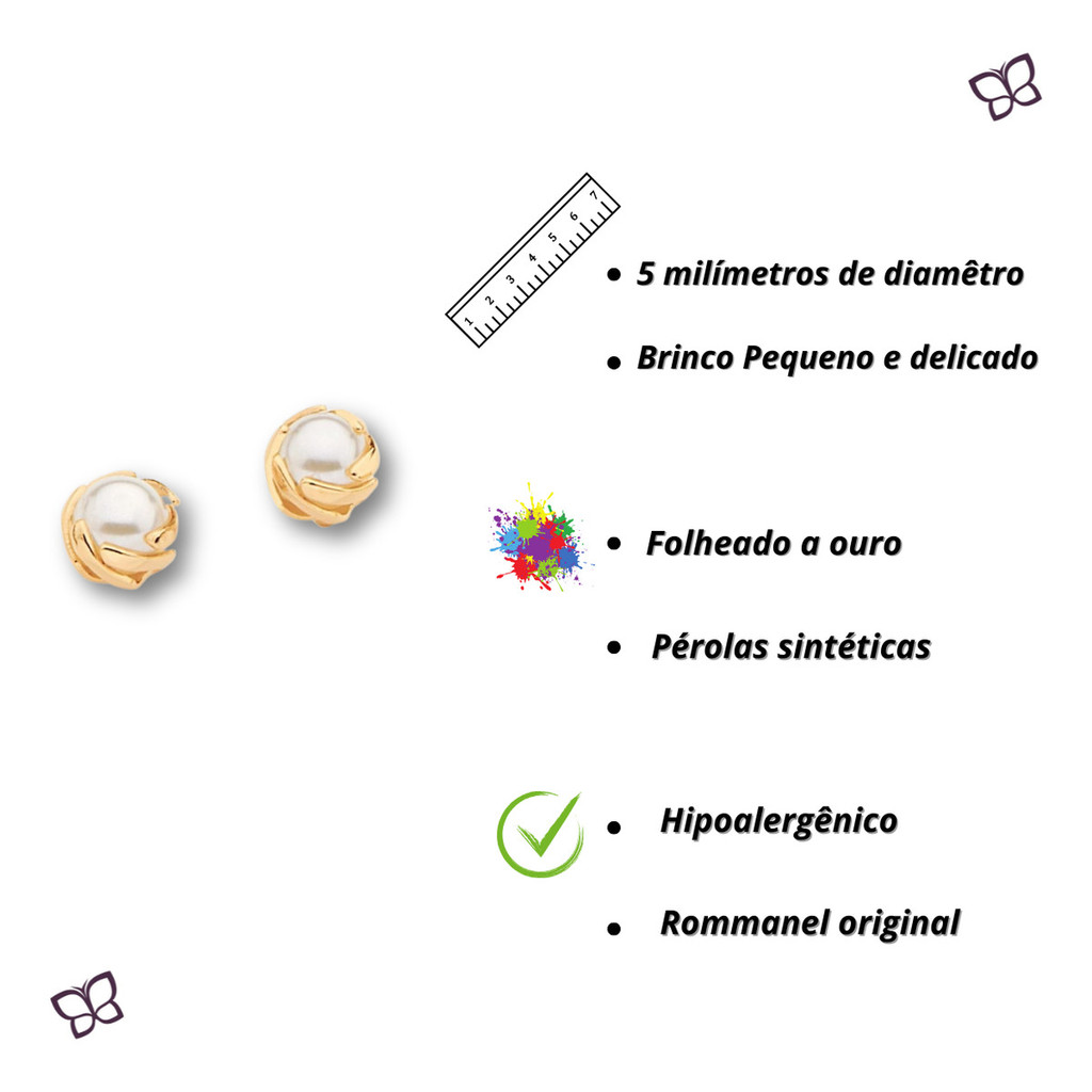 Brincos Ouro 18k Rommanel Joias Pérolas 4mm Pequeno Folheado a Ouro Original 525624