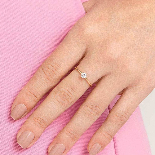 Anel Solitário Rommanel Folheado A Ouro 513053 Anel de Compromisso - Noivado -15 anos