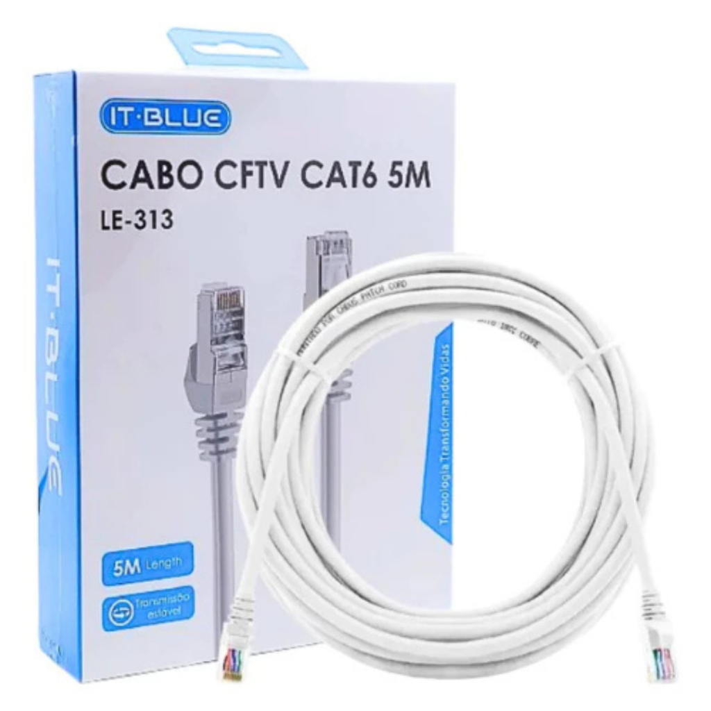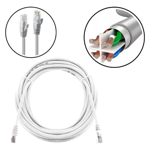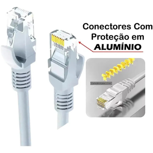 Cabo de Rede CAT6 Blindado RJ45 Ethernet Gigabit p/ CFTV e Internet –3m,5m,10m,15m,20m,30m,50m