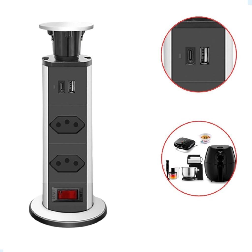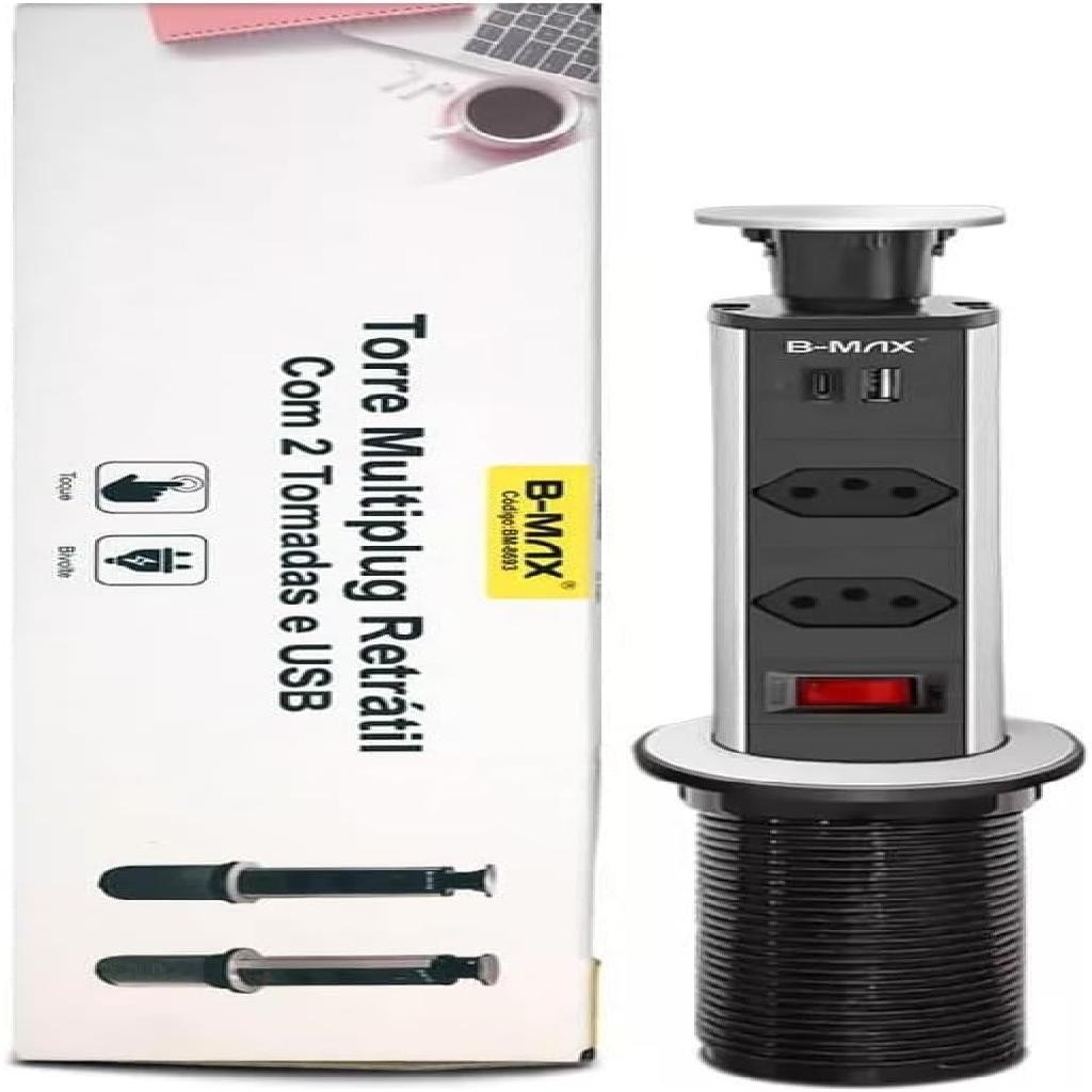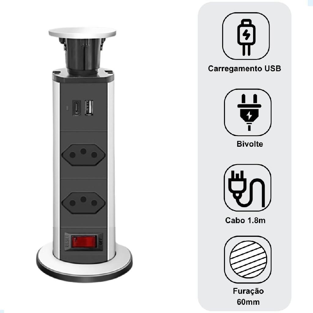 Torre de Tomadas Inteligente | Filtro de Linha com 2 USB e USB-C | Multiplug Bivolt