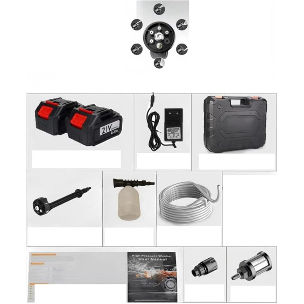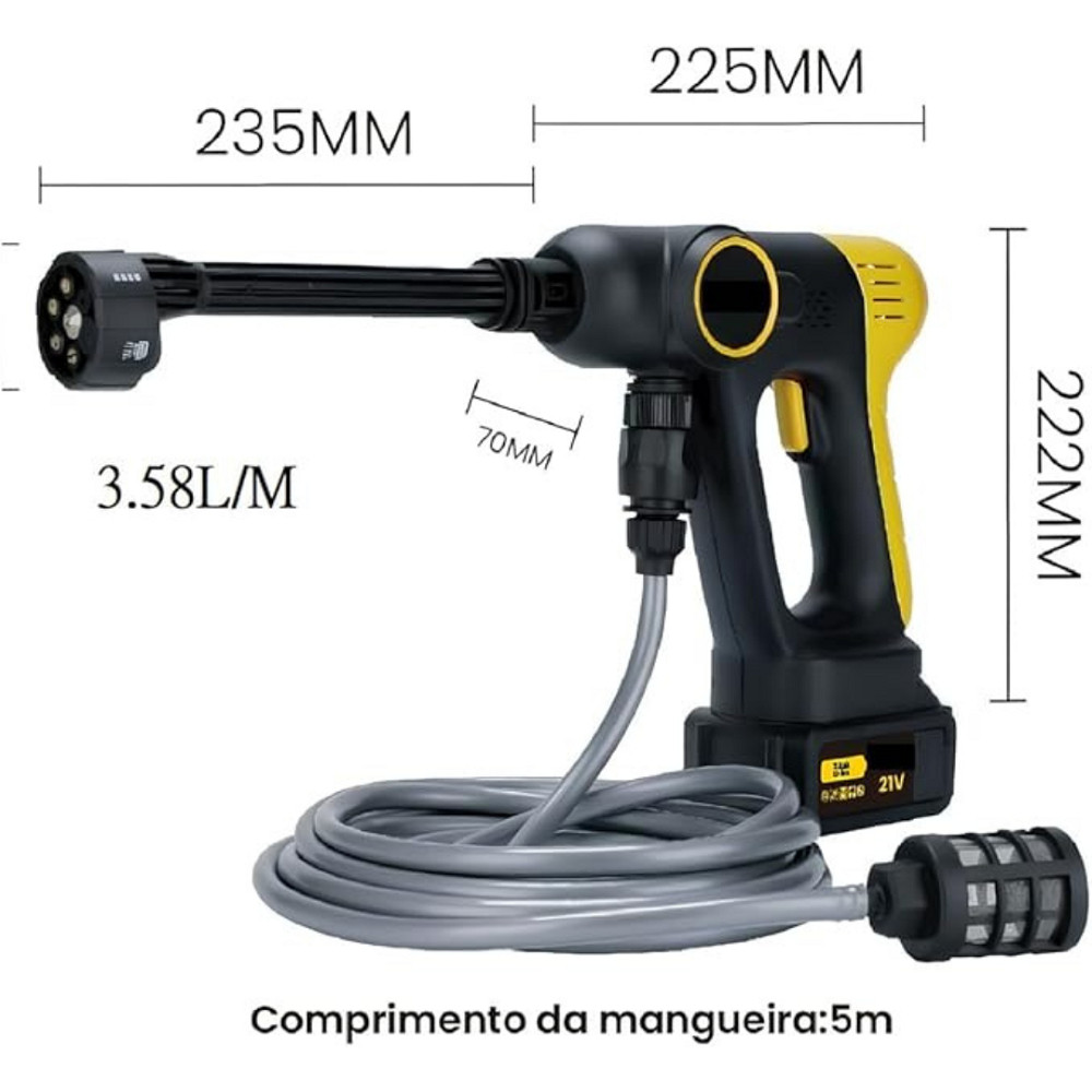 Lavadora de Alta Pressão Portátil 21V | Pistola Sem Fio com Bateria Recarregável