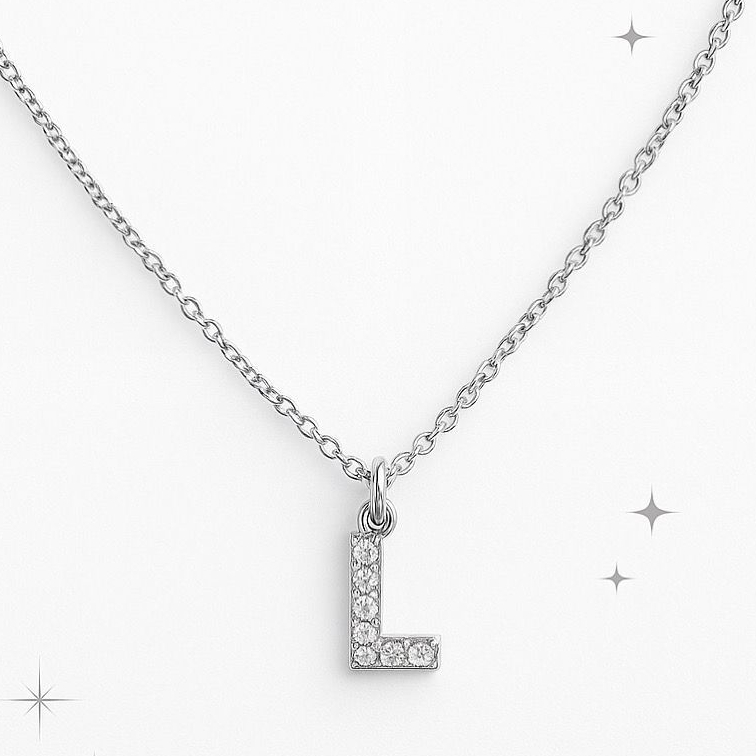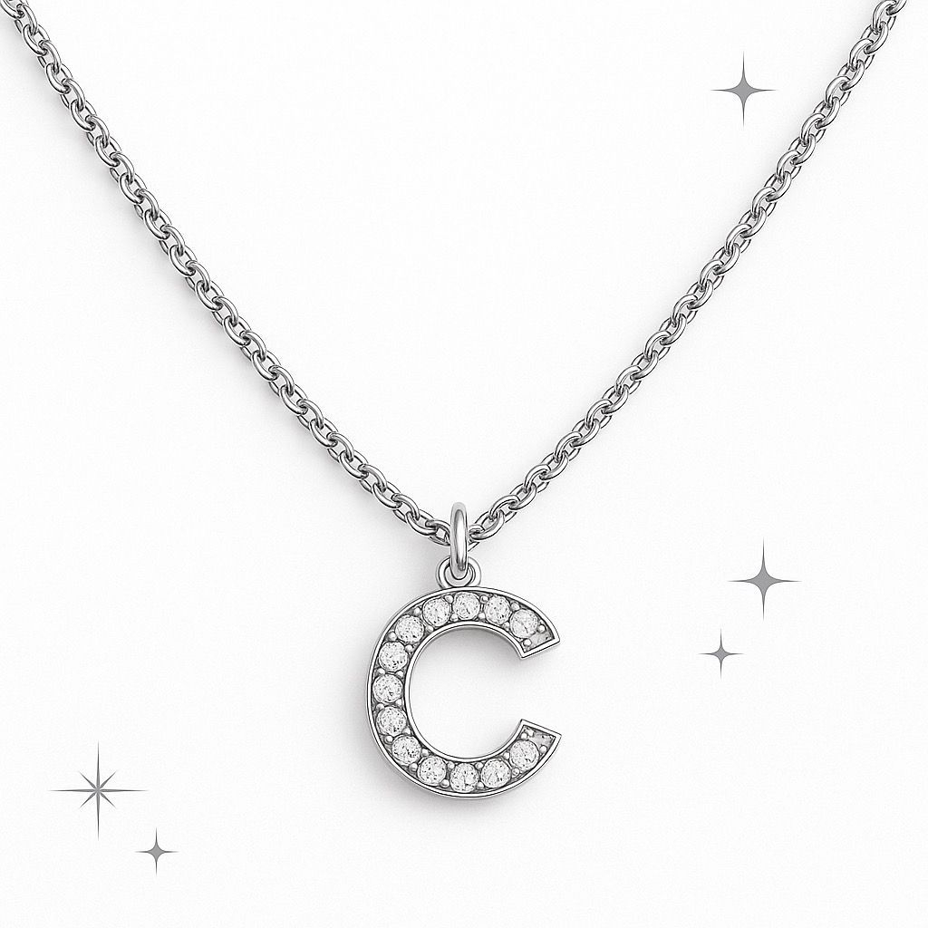 Colar Feminino com Letra Inicial Cravejada – Corrente Aço Inoxidável