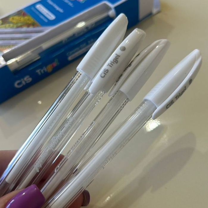 Kits de até 3 Caneta gel Branca CIS TRIGEL 0.8mm para desenhos ou marcar sobrancelha micropigmentação