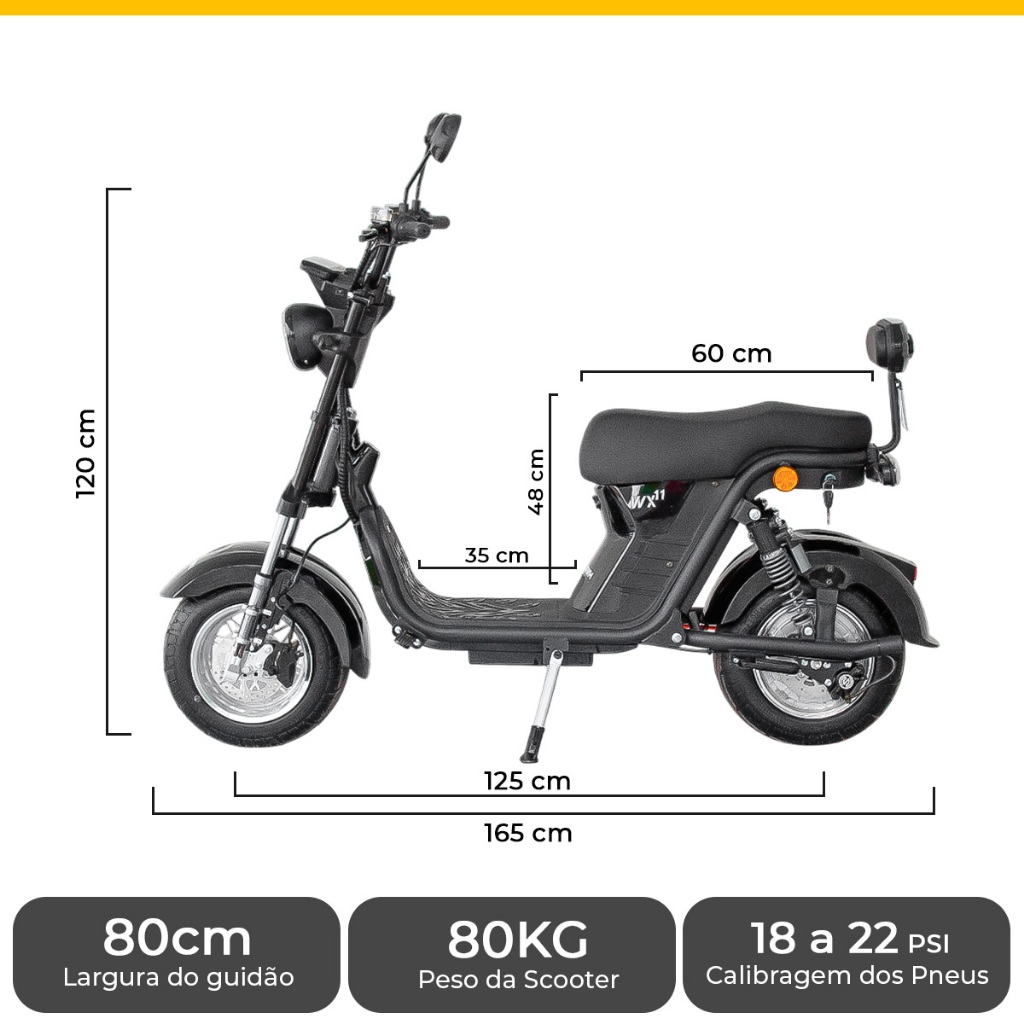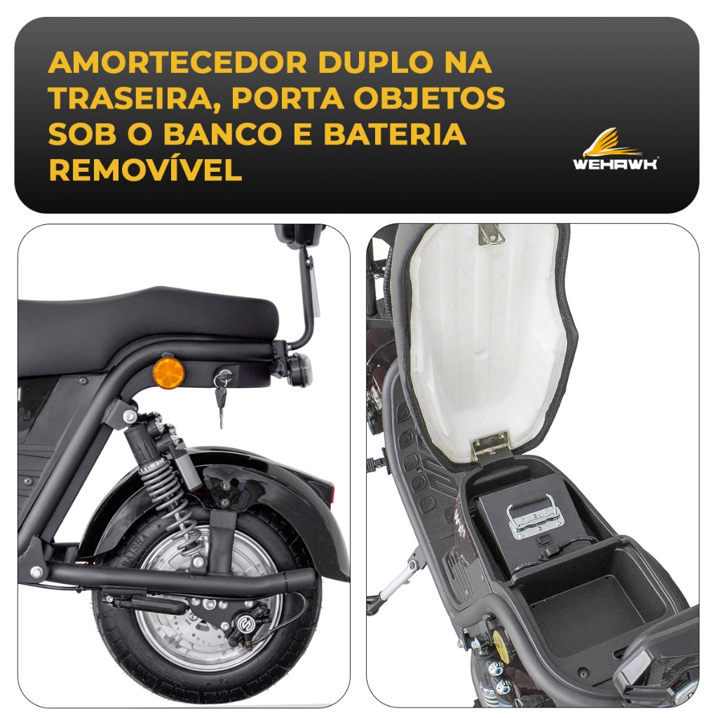 Scooter Moto Elétrica 1000W com Bateria Removível 20Ah - WeHawk WX-11