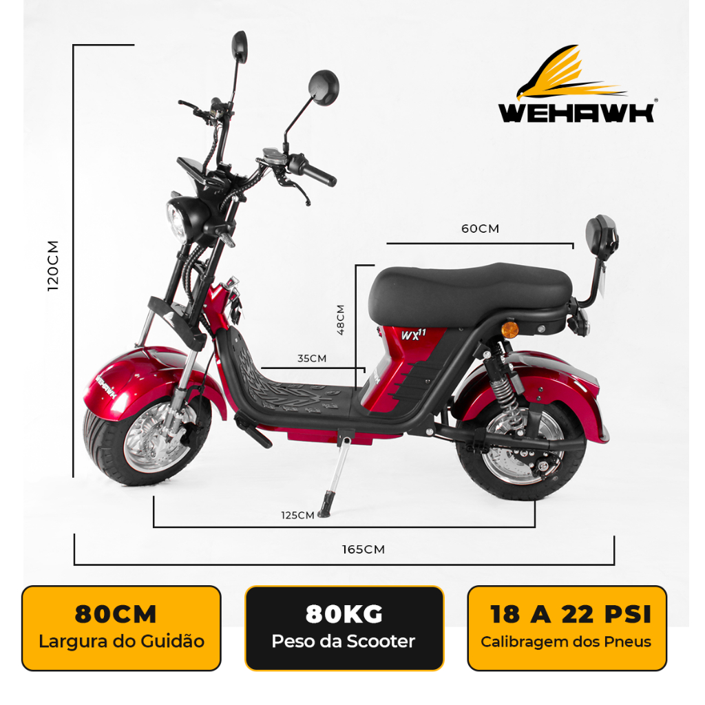 Scooter Moto Elétrica 1000W 20Ah WeHawk WX-11 com Bateria Removível!