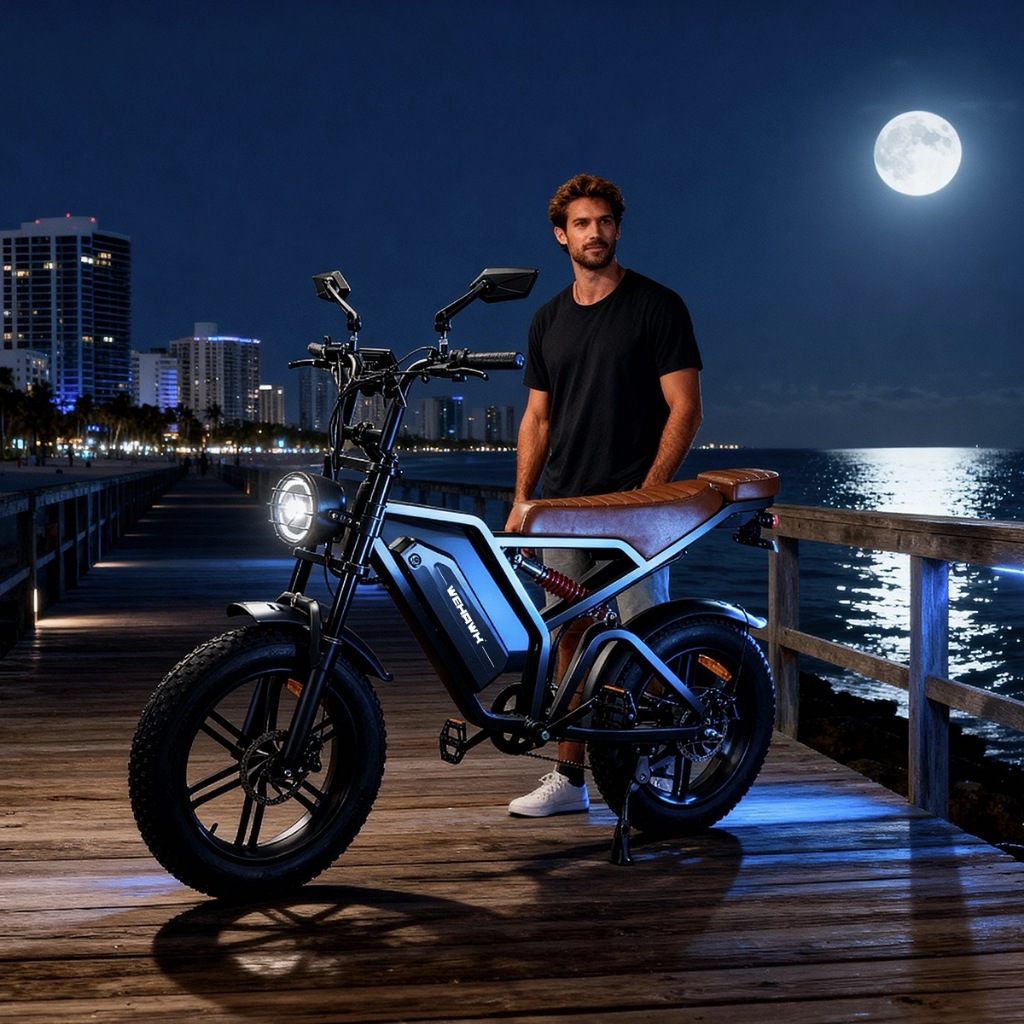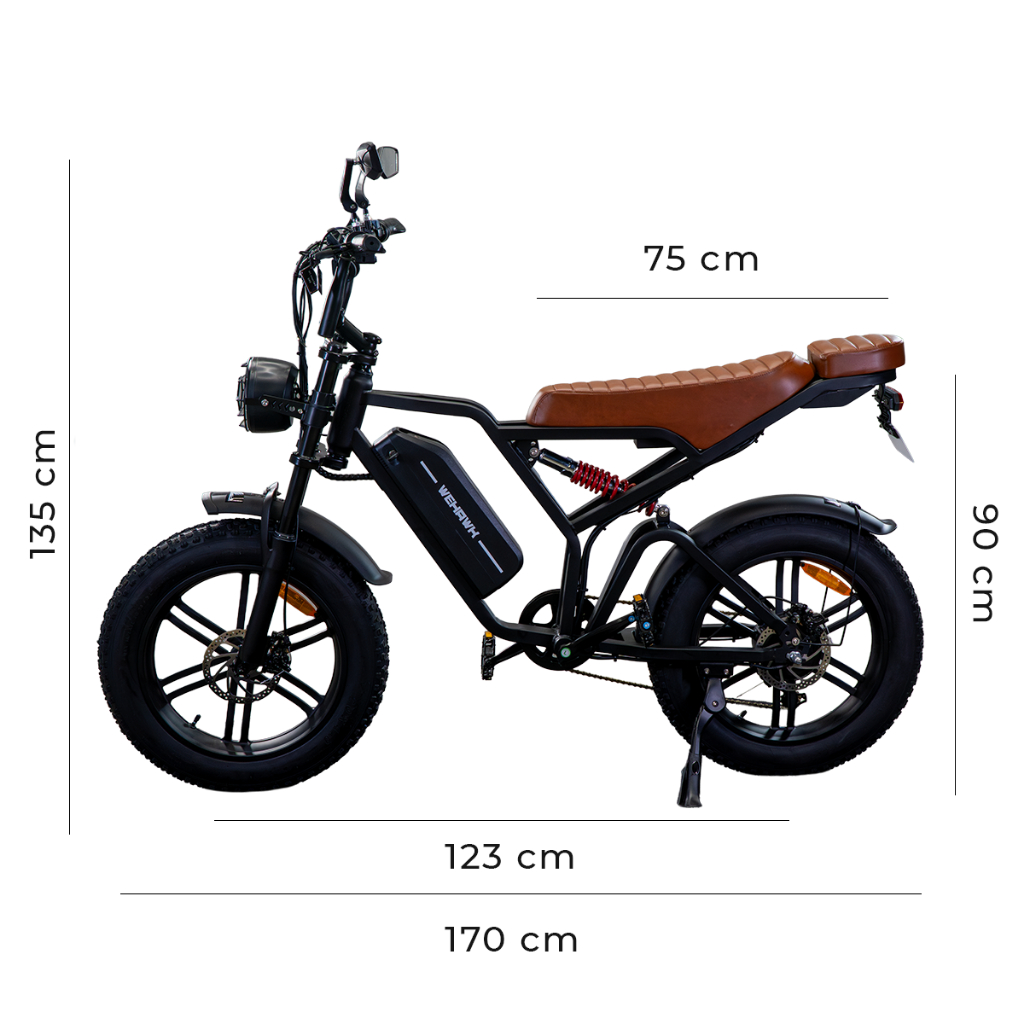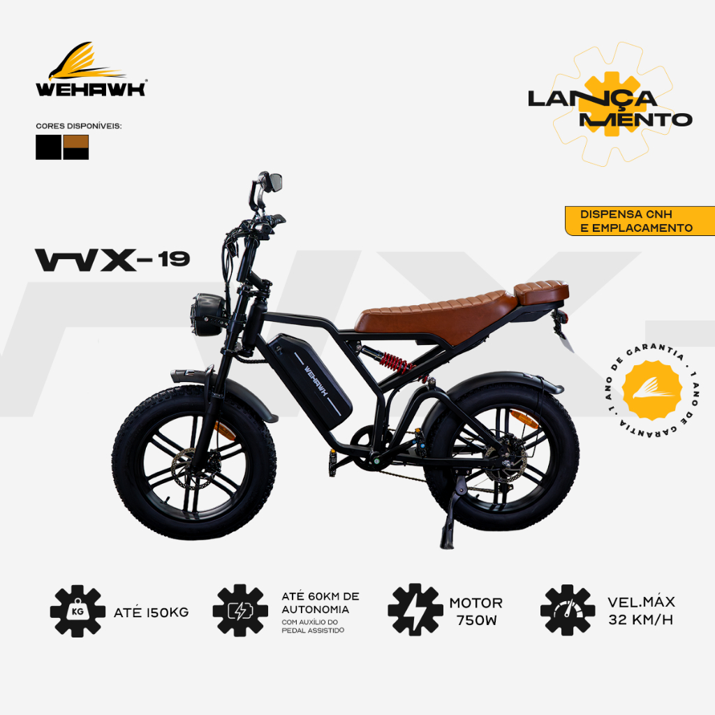 Bicicleta Elétrica 750W Fat Bateria de Lítio Removível E-bike Wehawk Wx-19 48V 15Ah Marrom