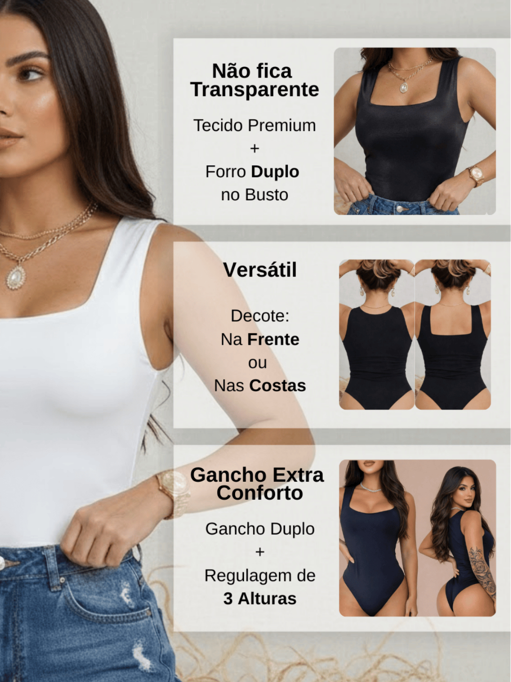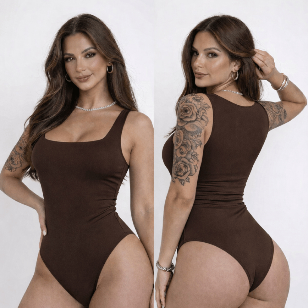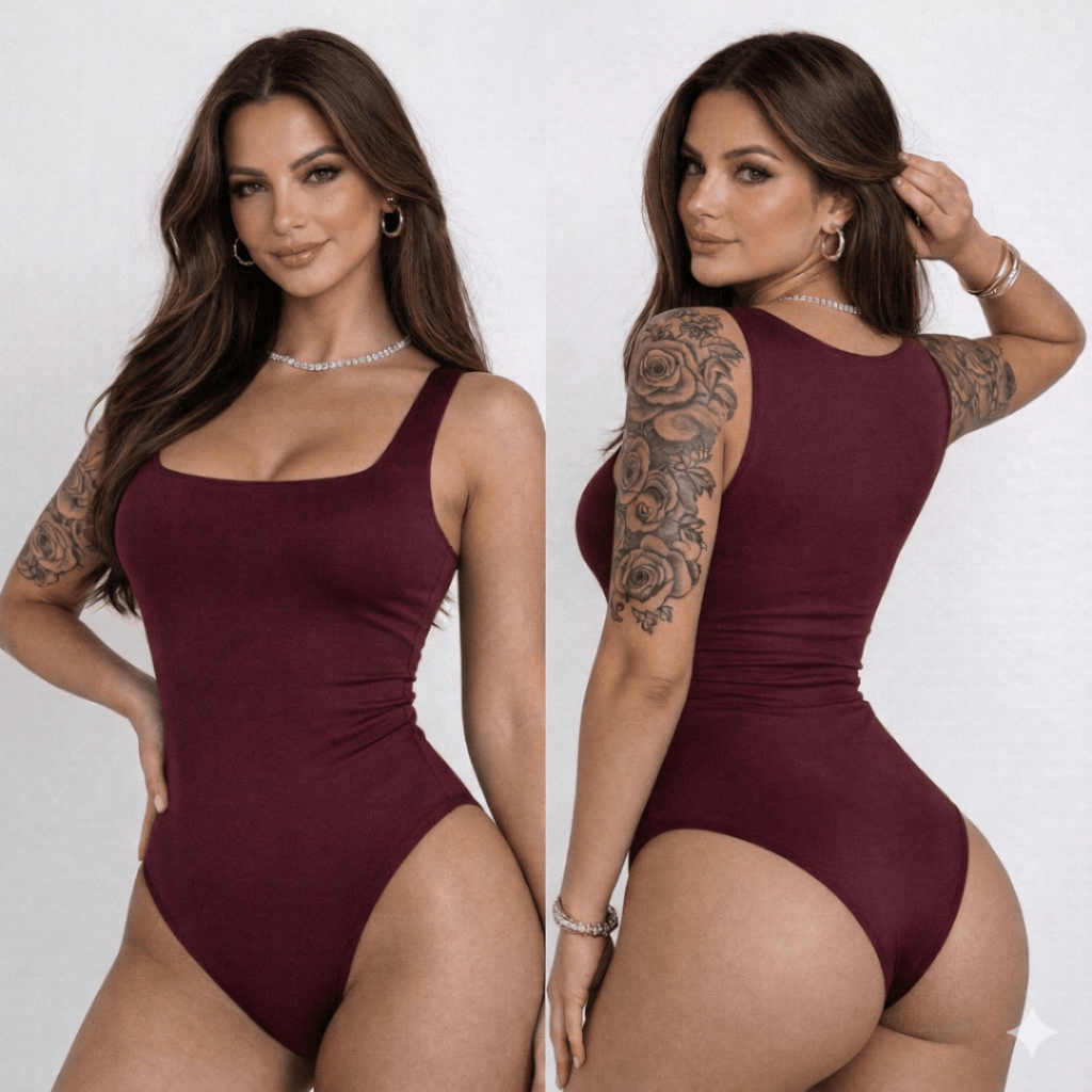 🔥 Body Collant Feminino Decote Quadrado Suplex Forrado Regata Blogueira Confortável