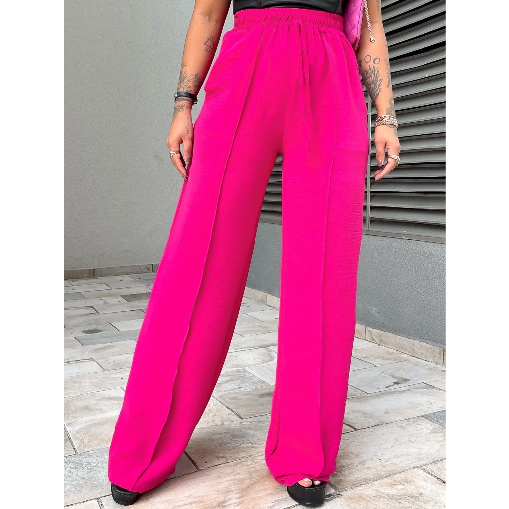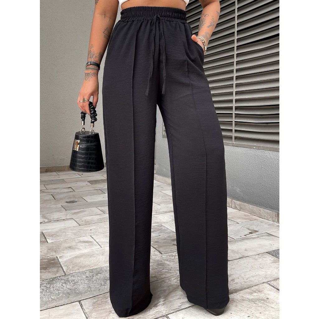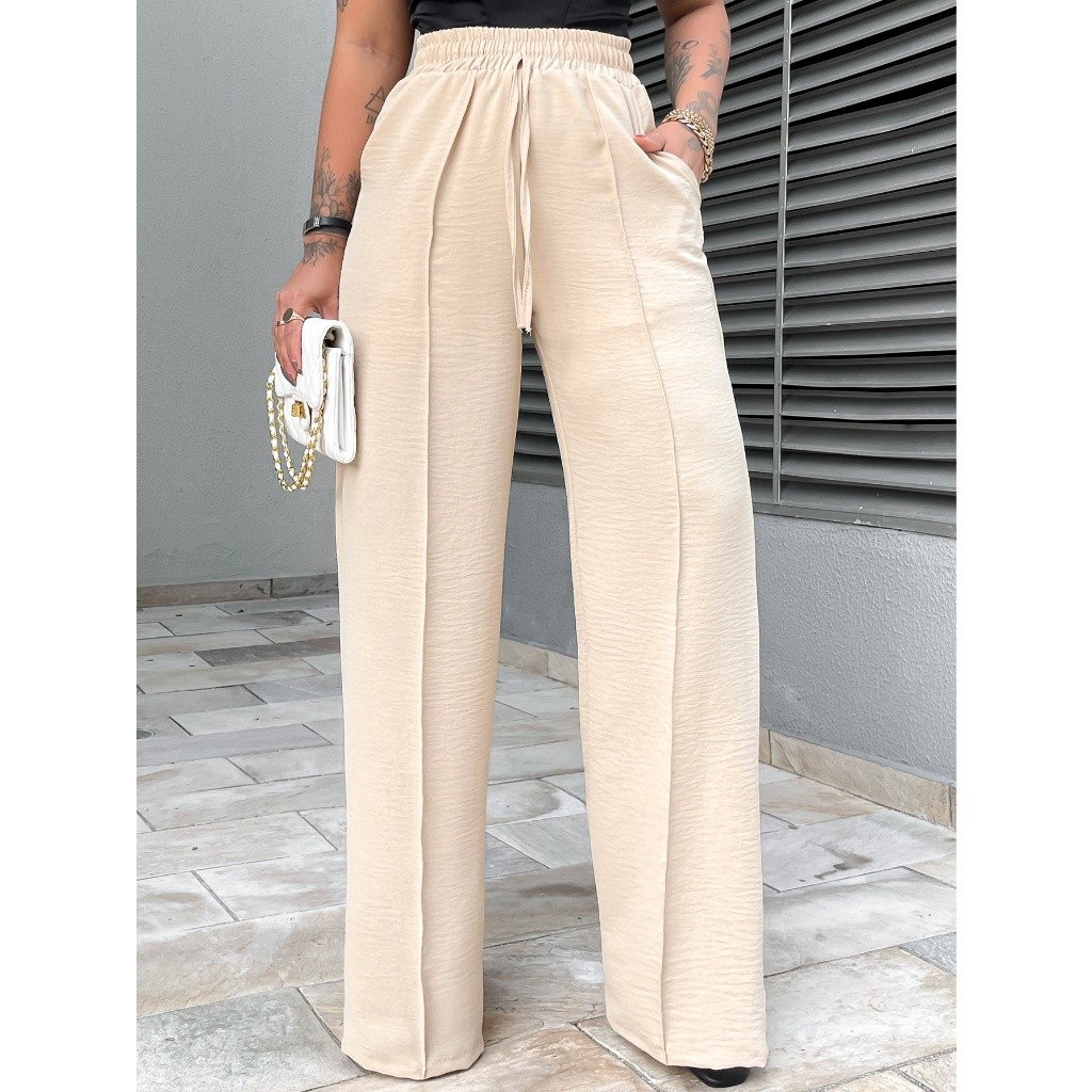 Calça Pantalona Feminina Duna Bolso Cintura Elástica
