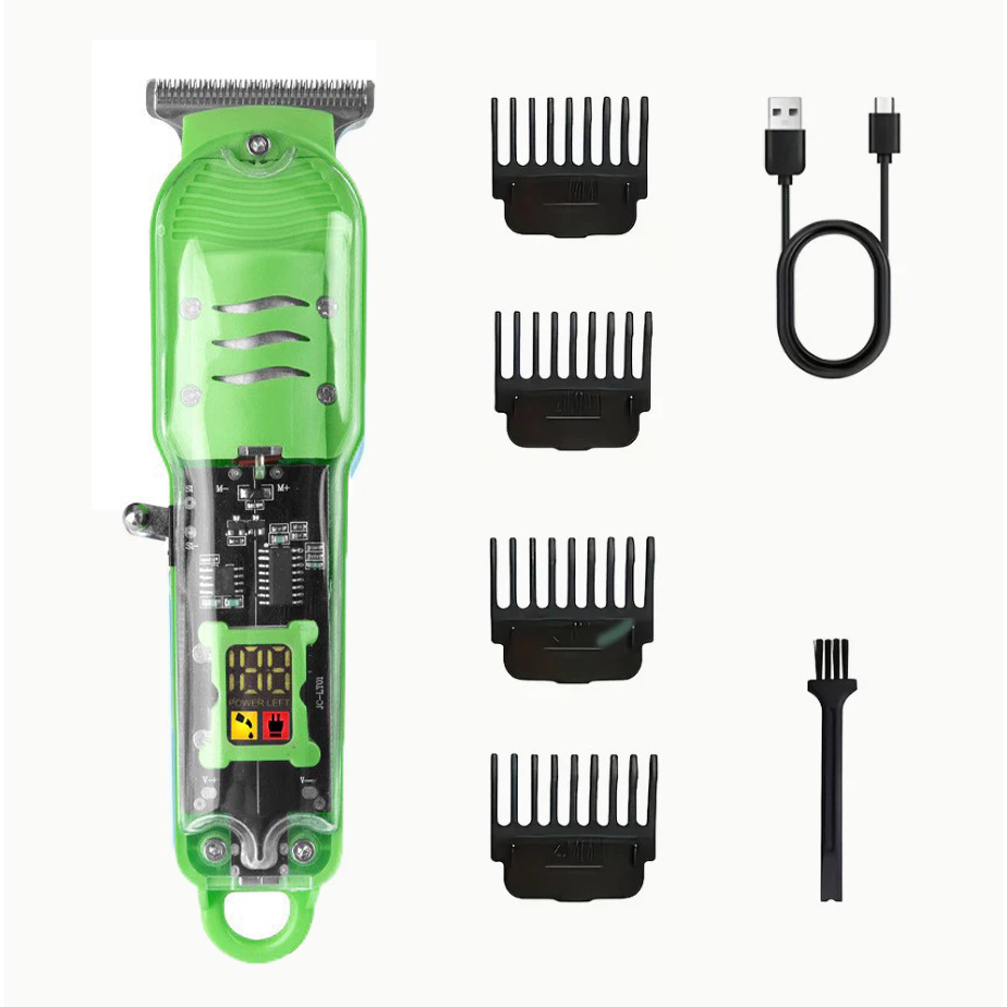 Máquina De Cortar Cabelo Profissional Smart Lcd Display Barbeador Eletrico Transparente Sem Fio Para Homens