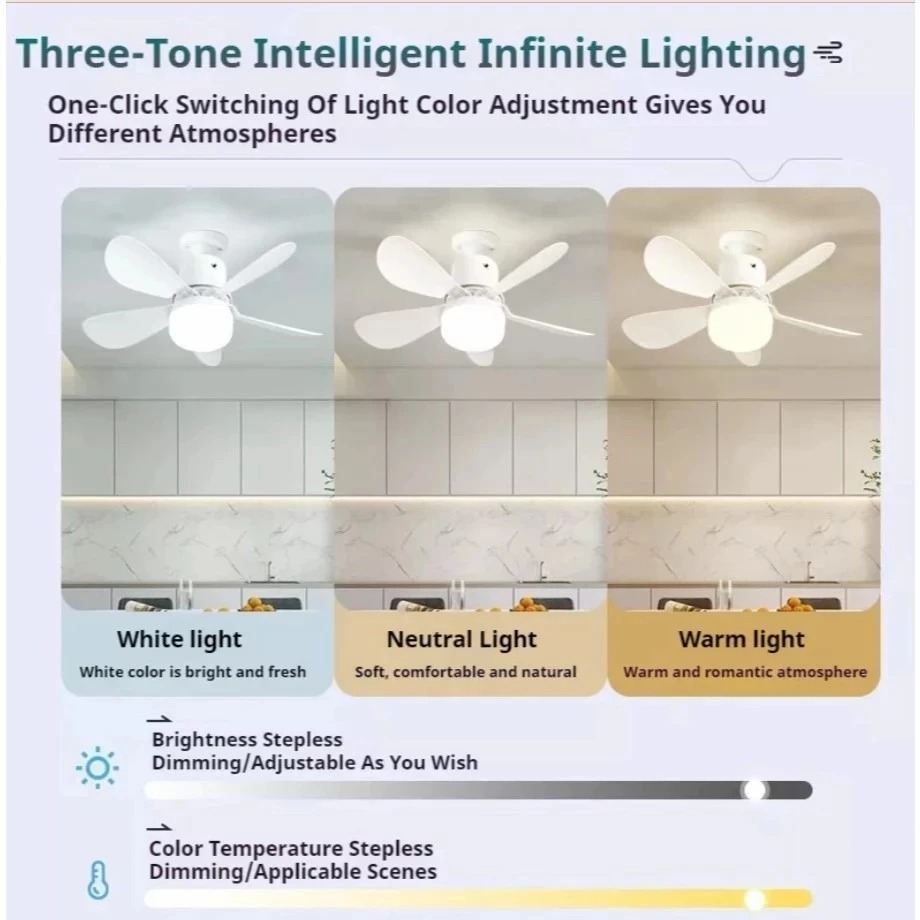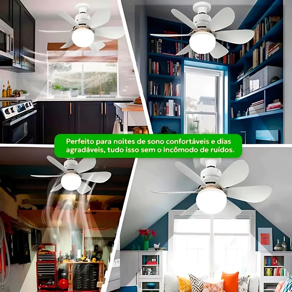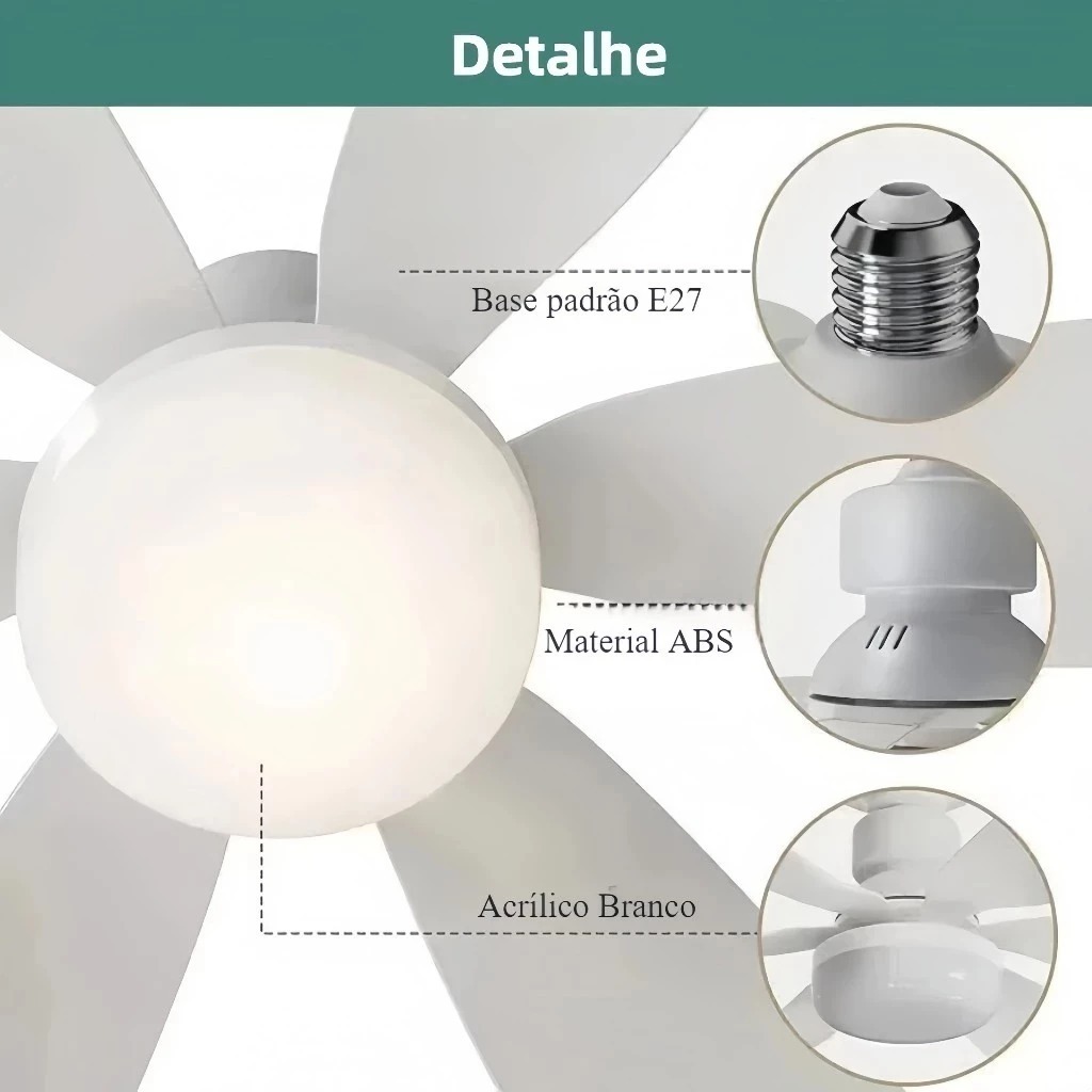 Ventilador de Teto com Lâmpada LED E27 6 Pétalas 60W 3 Velocidades Controle Remoto