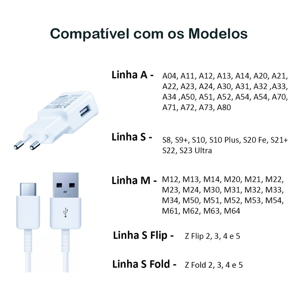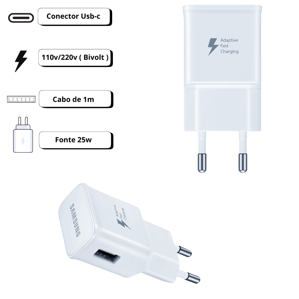 Carregador Samsung Original S23+ S24 Ultra S25+ S25 Ultra A14 A15 A24 A25 A33 A34 A35 A80 M53 M54 M55 M62