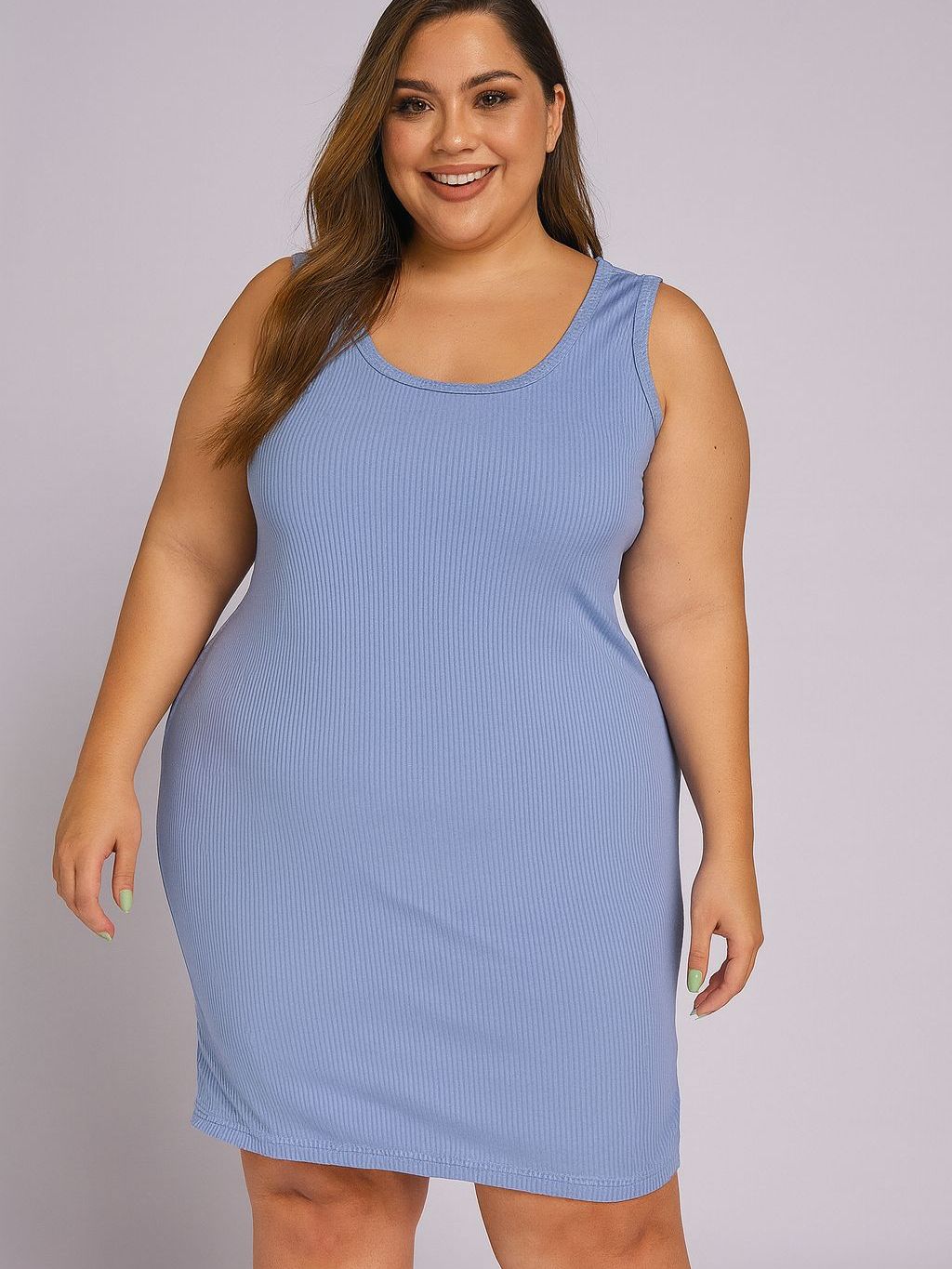 Vestido Plus Size Canelado Feminino Regata Verão Midi Tamanho G1|G2|G3 Oferta | 3623 |