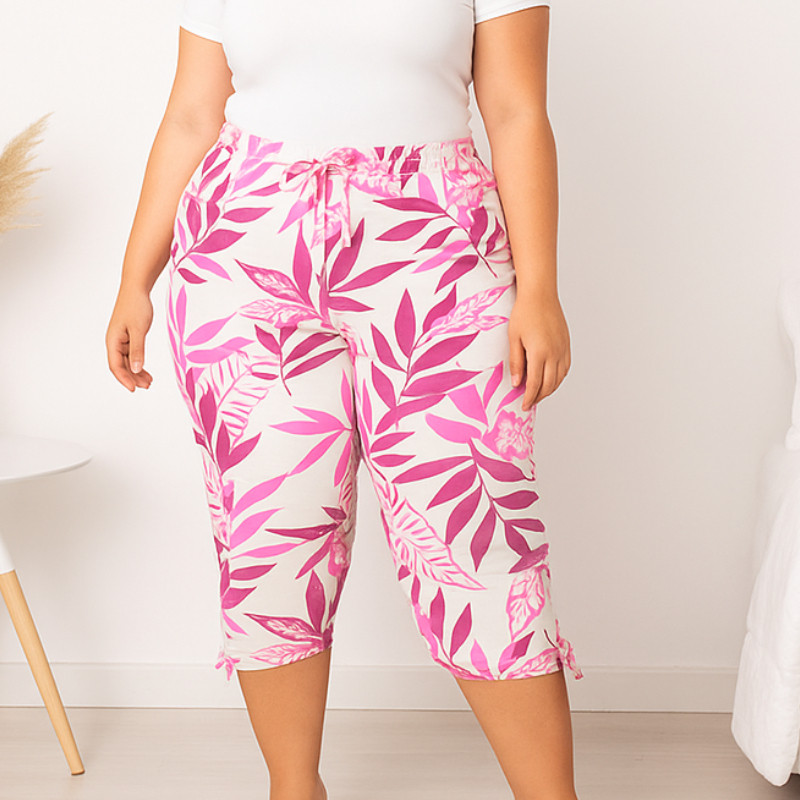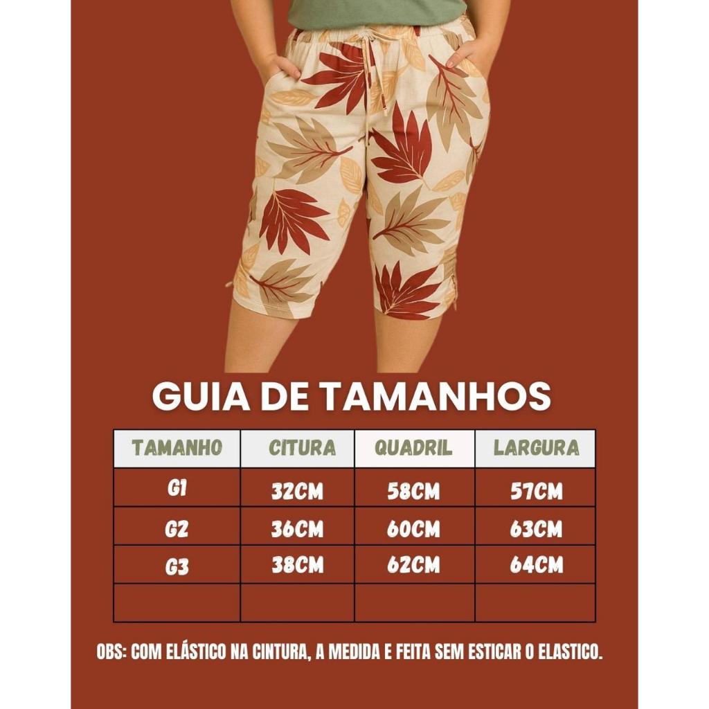 Bermuda Capri Feminina Plus Size Estampada Cintura Alta Confortável Verão Tecido Leve | 3742 | Oferta