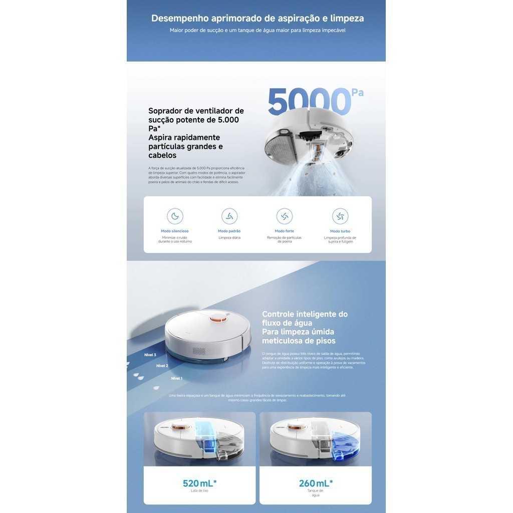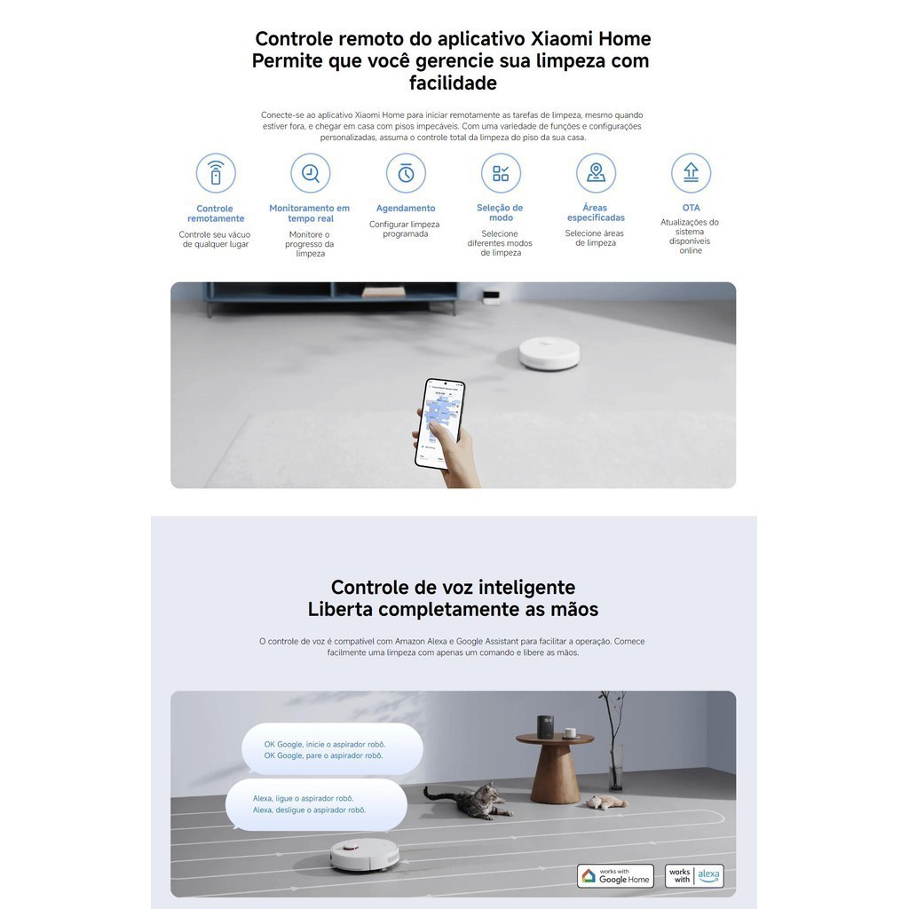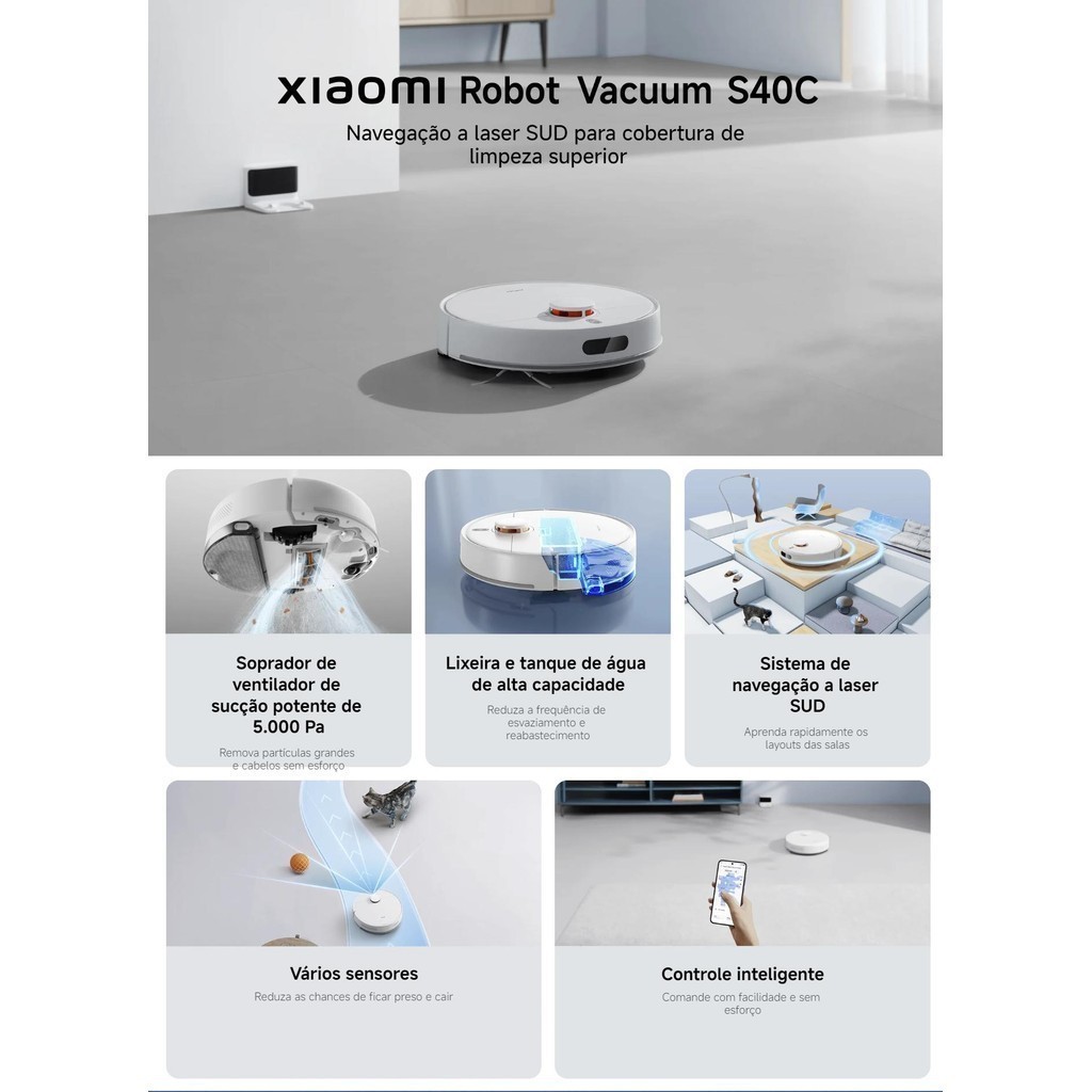 Robô Aspirador Xiaomi S40 C Alexa limpeza de alta performance Mapeamento a Laser inteligente Automática