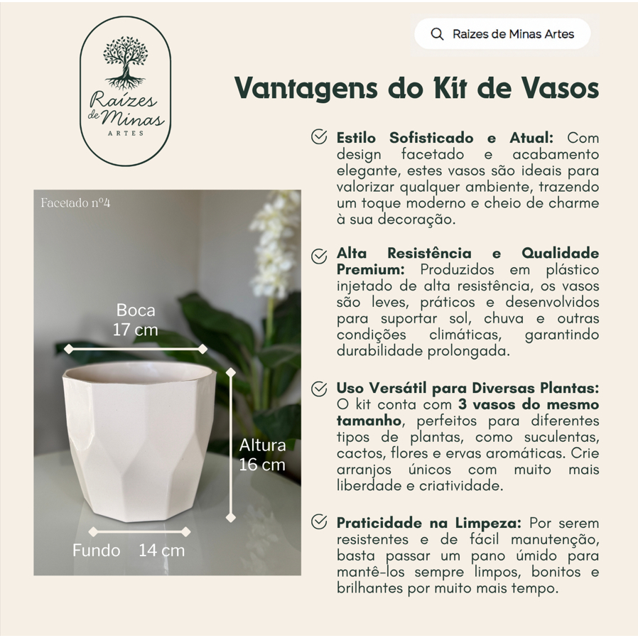 Kit Vaso Textura Facetada Nº4 de Plástico Injetado Durável Design Moderno com 02 unidades