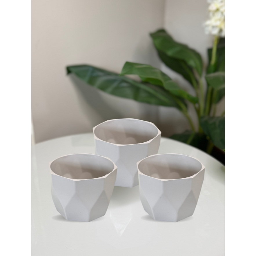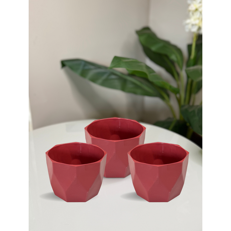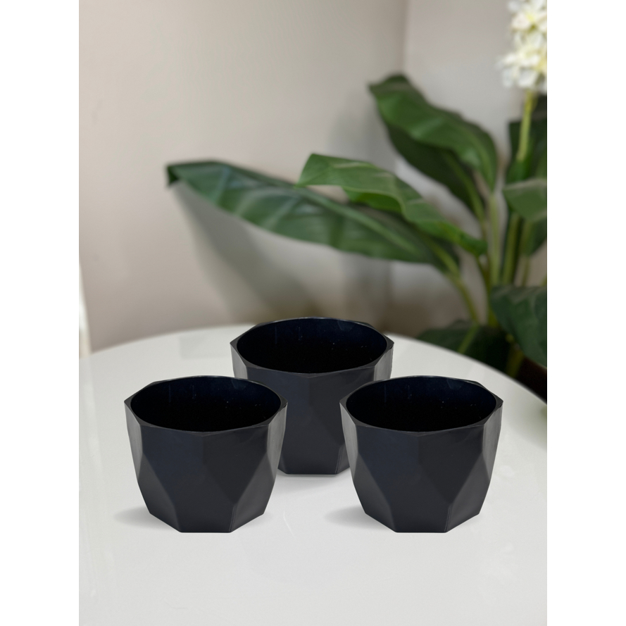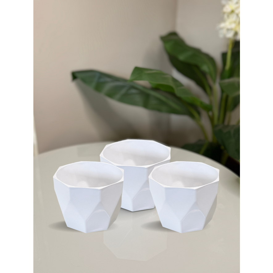 Kit Vaso Facetado N2 Decorativo para Plantas de Plástico Injetado com 03 unidades