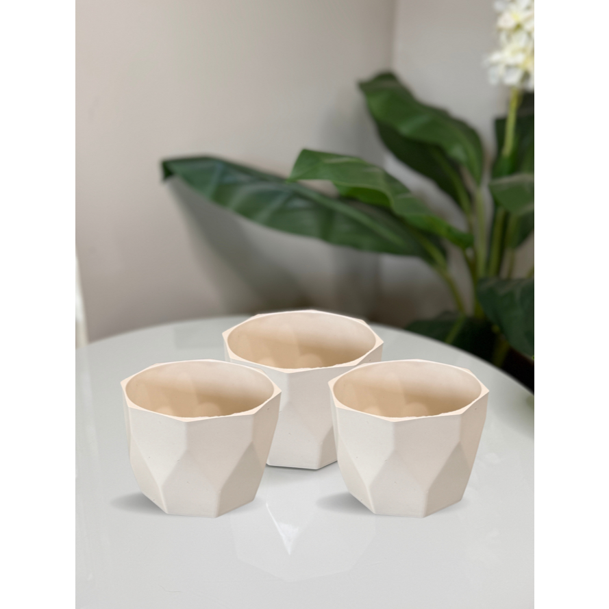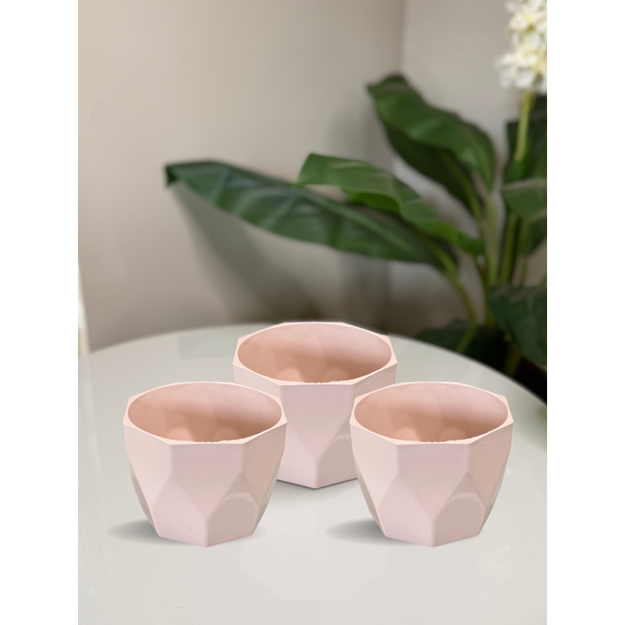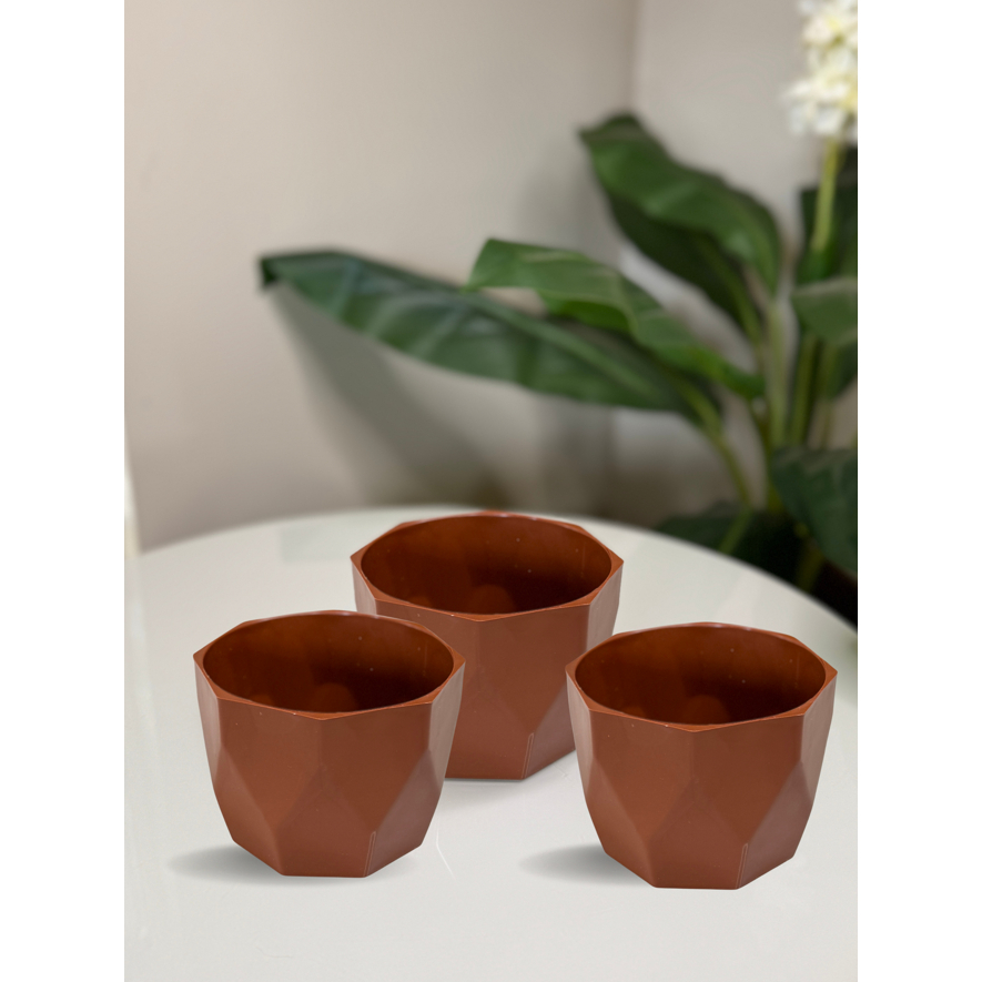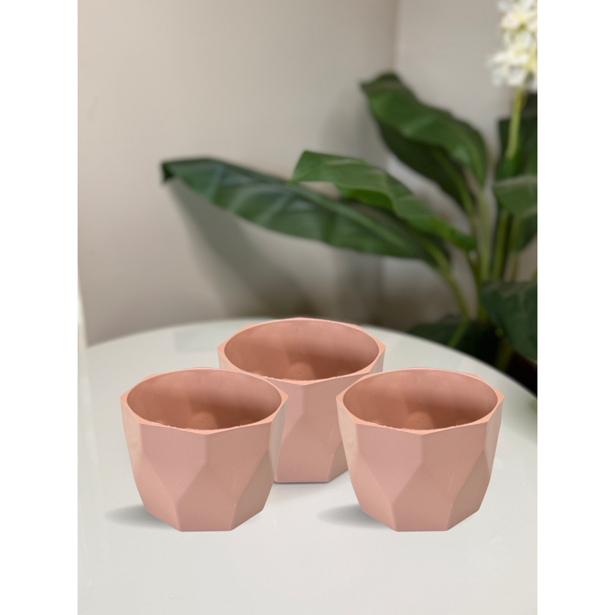 Kit Vaso Facetado N2 Decorativo para Plantas de Plástico Injetado com 03 unidades