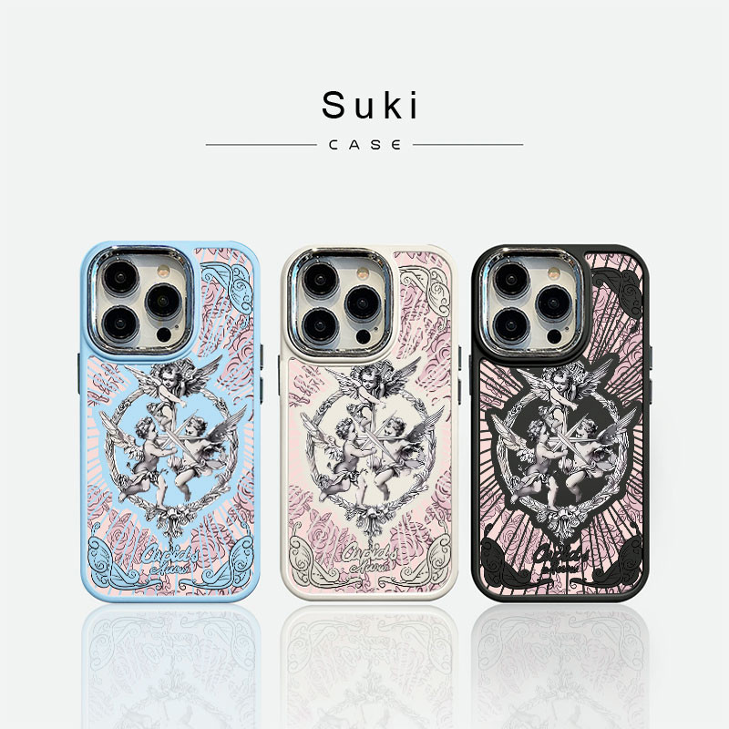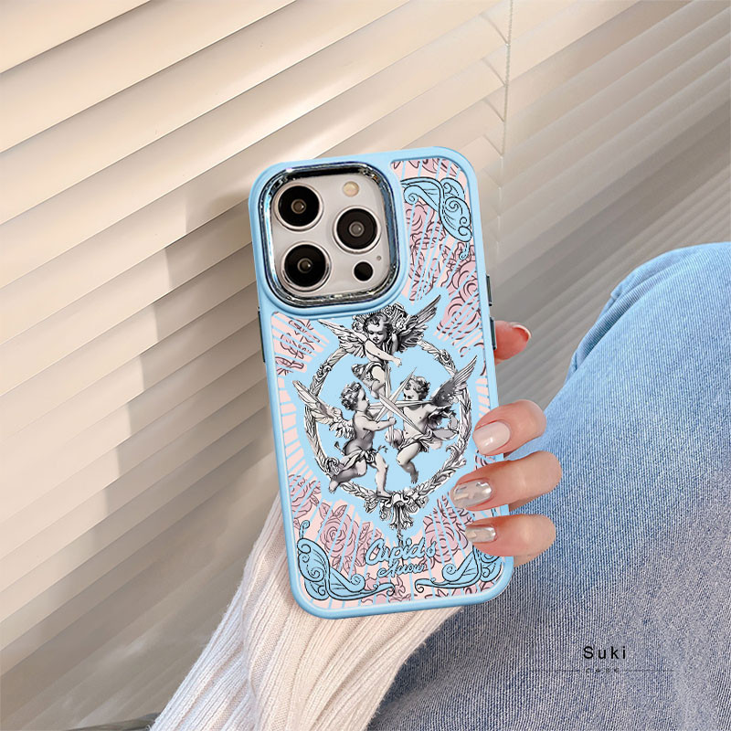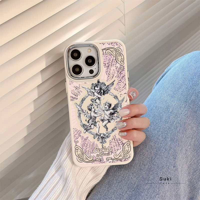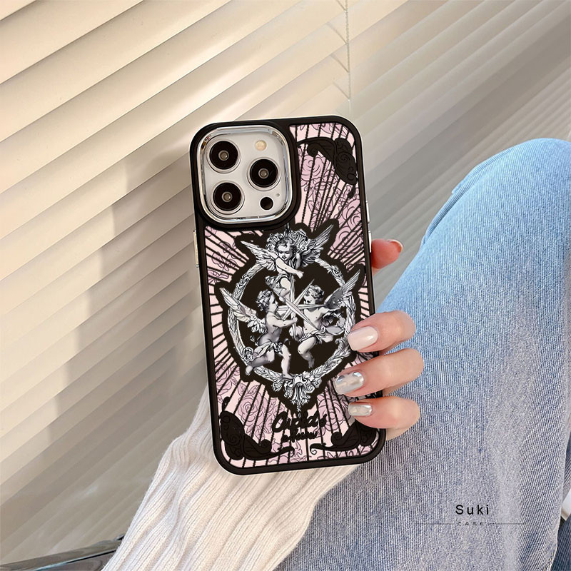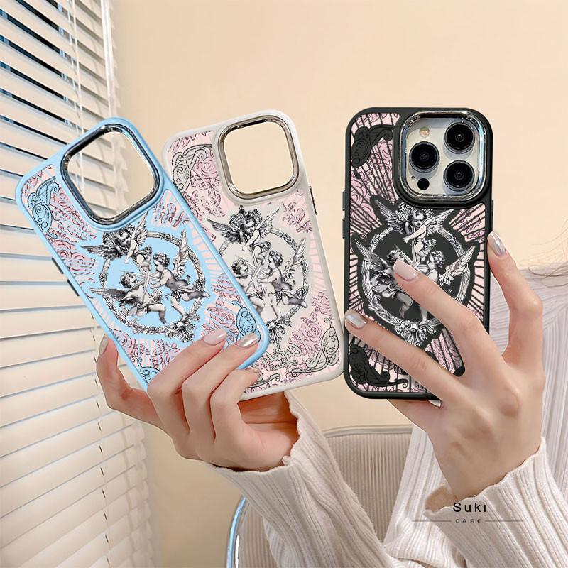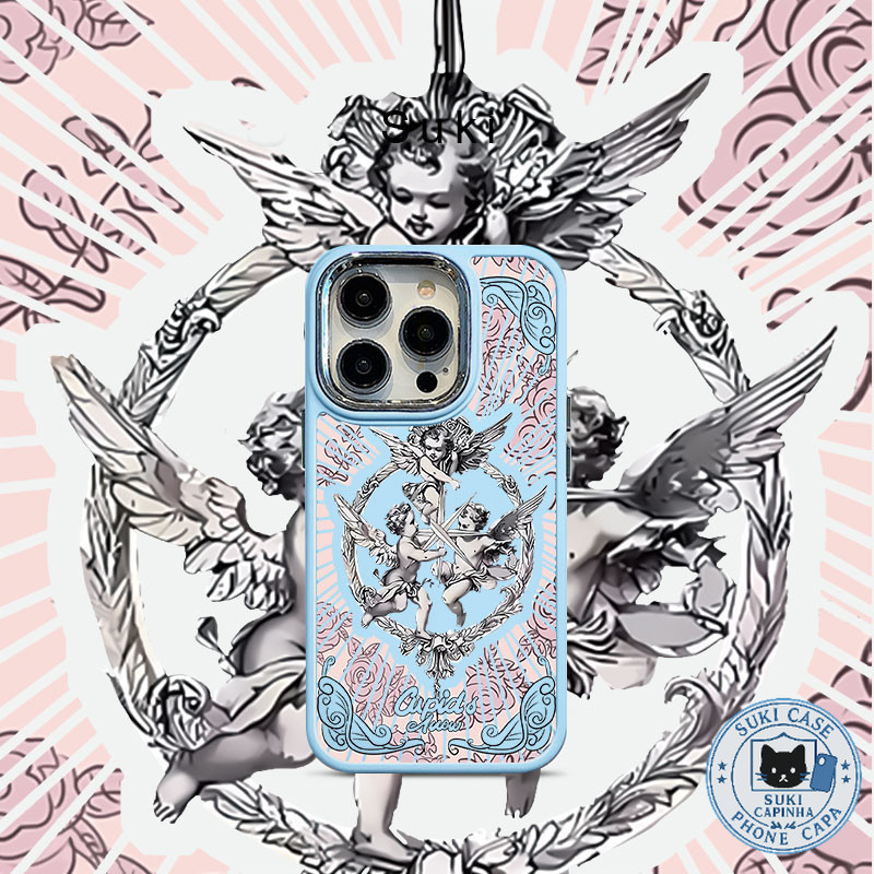 Capinha capa silicone fosco Anti-impacto Anjo Cupido IPhone 13 12 11 14 15 16 Pro Max XR XS MAX CASE