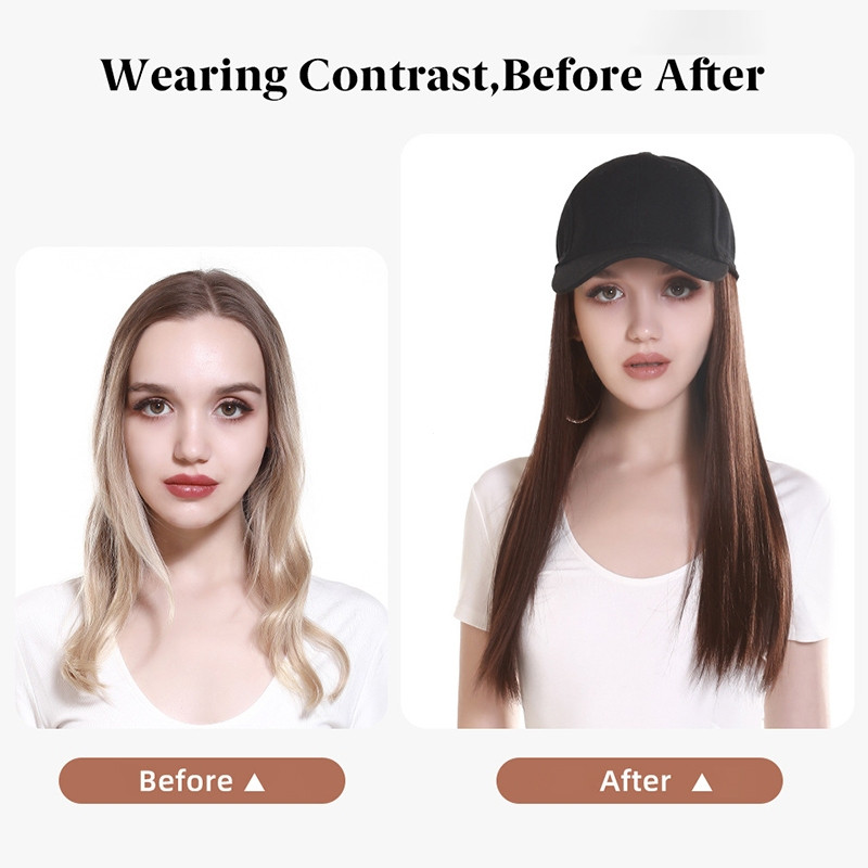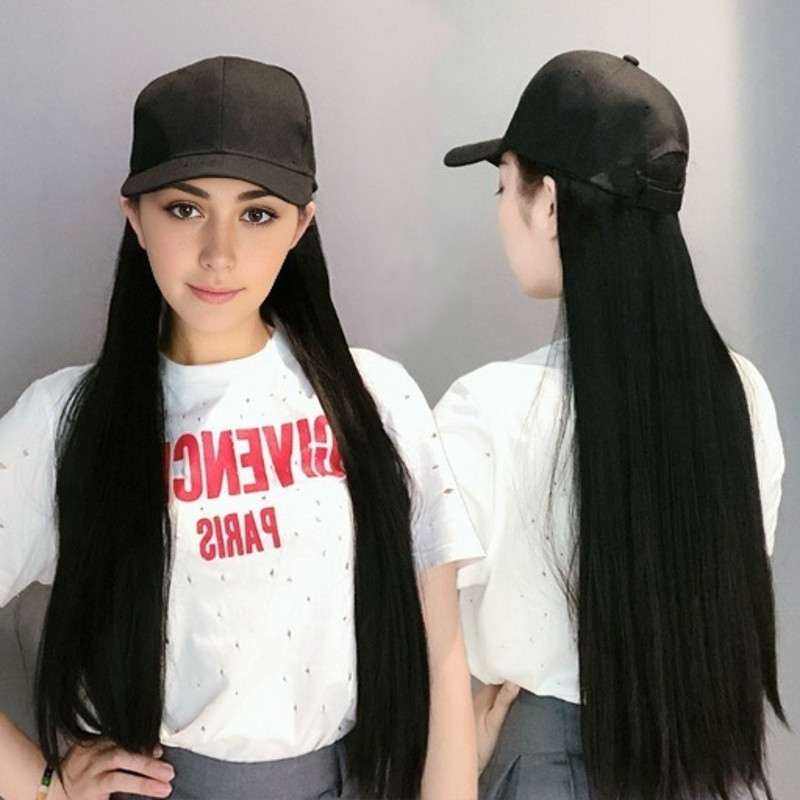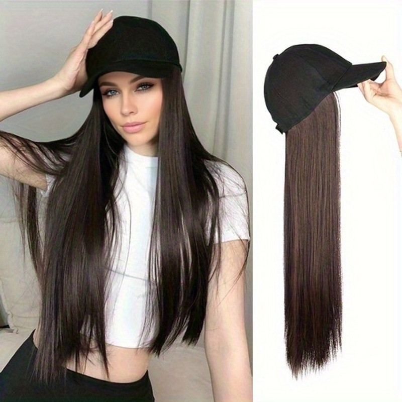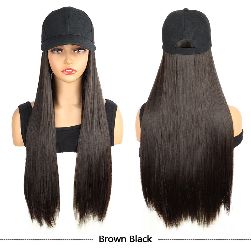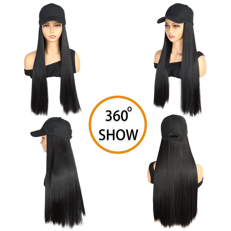 Boné De Beisebol Longo E Reto Sintético Bob Peruca Preto Cabelo Se Conecta Naturalmente Ao