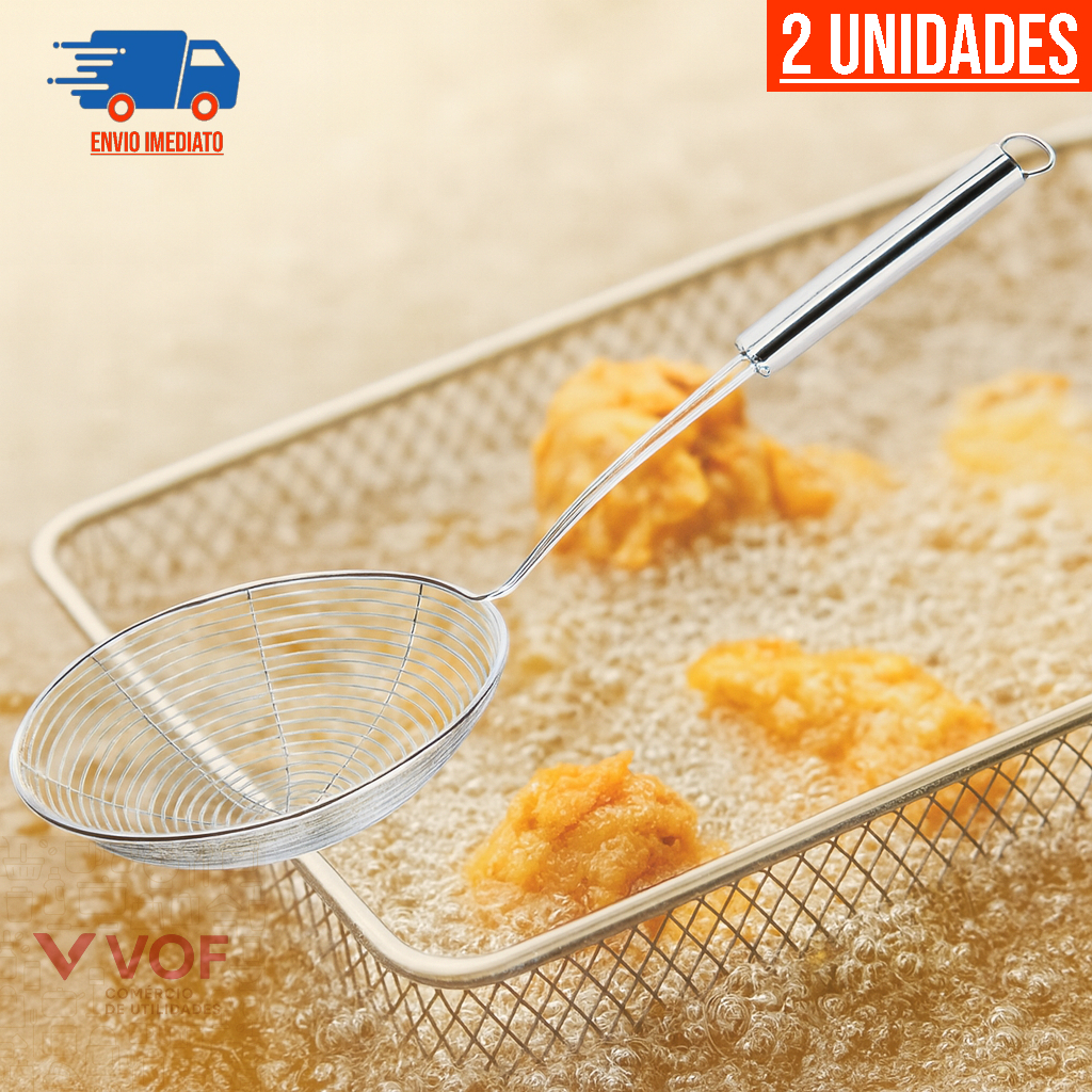 Kit Peneira Escumadeira Inoxidável Cozinha Fritura Óleo Resistente Massas Alimentos