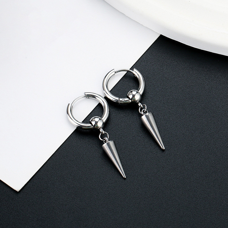Brinco Argola Rock Punk Hip Hop com Ponta Cônica – Aço , Estilo Unissex, 1 Peça