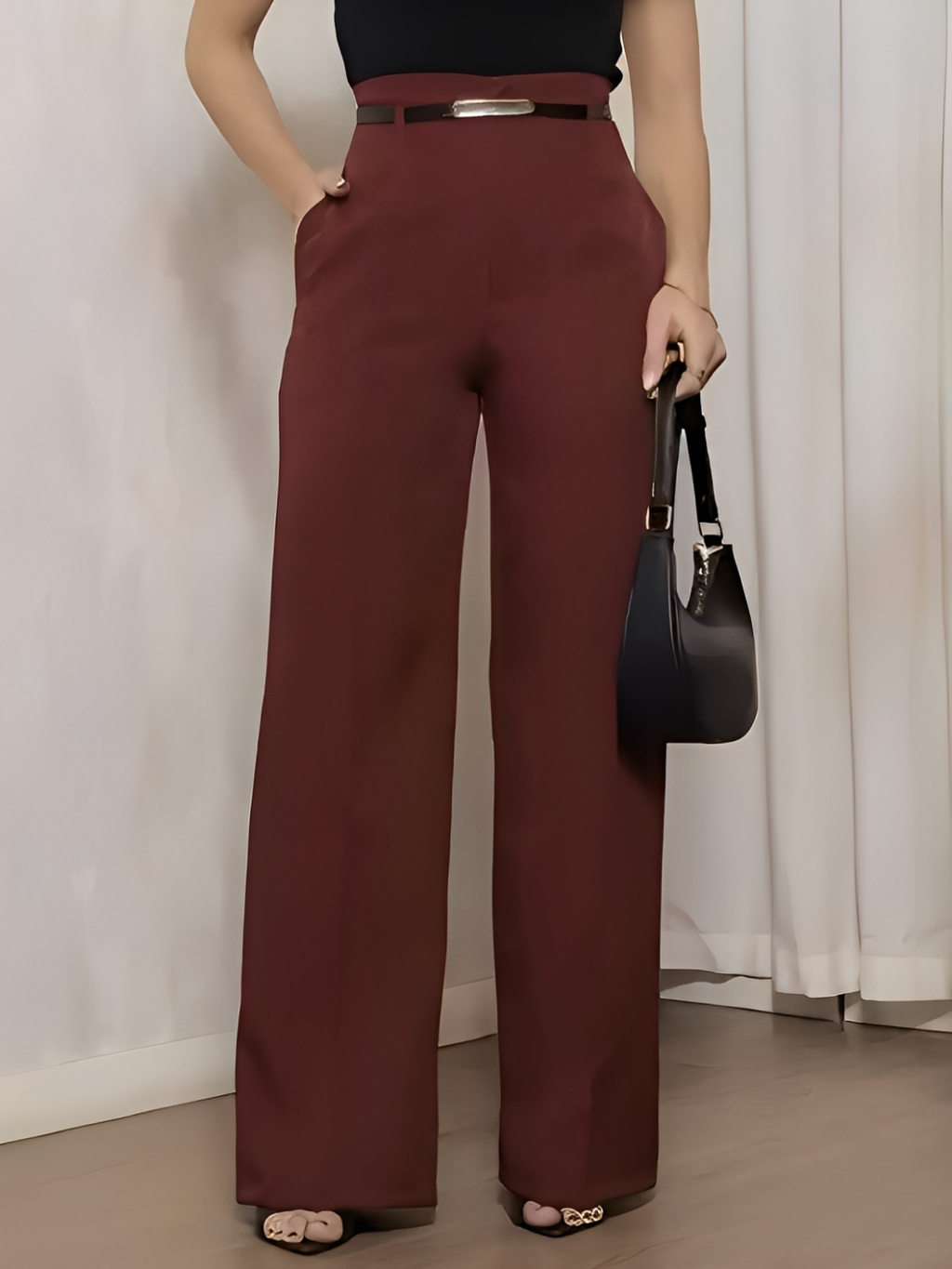 Kit 2 Calça Pantalona Alfaiataria Premium Feminina Com Cinto Bolso e Ziper Lateral