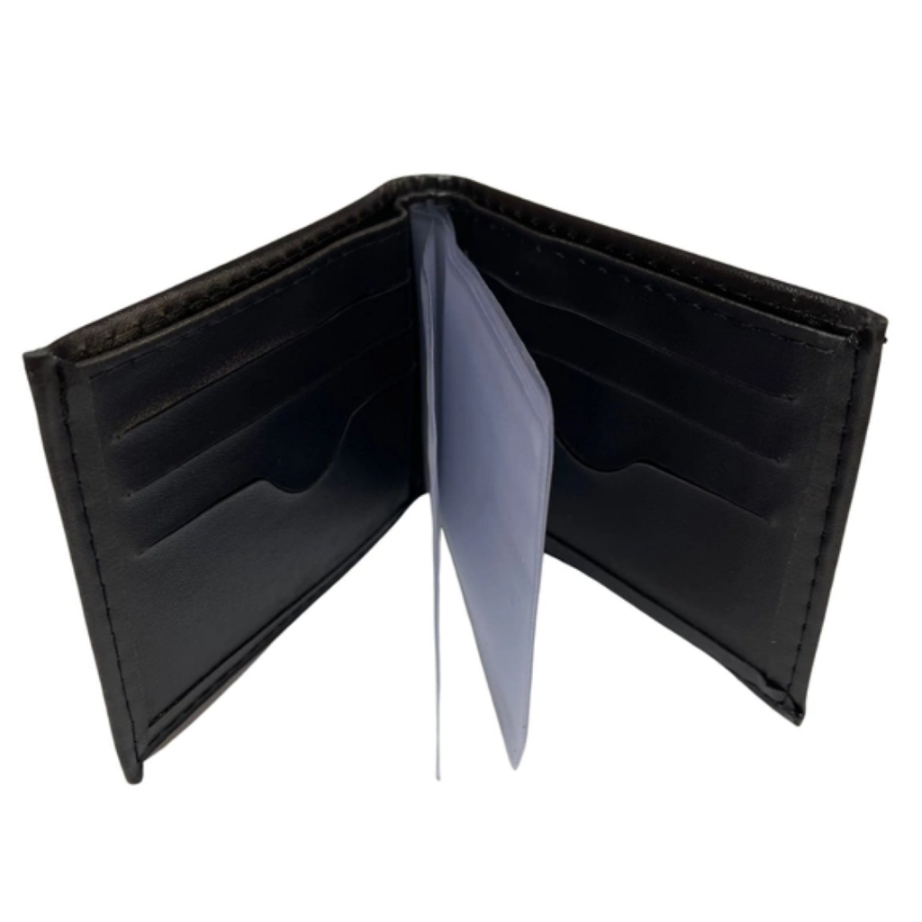 Carteira Masculina Couro Sintético Slim Preto Fina Pequena Porta Cartão