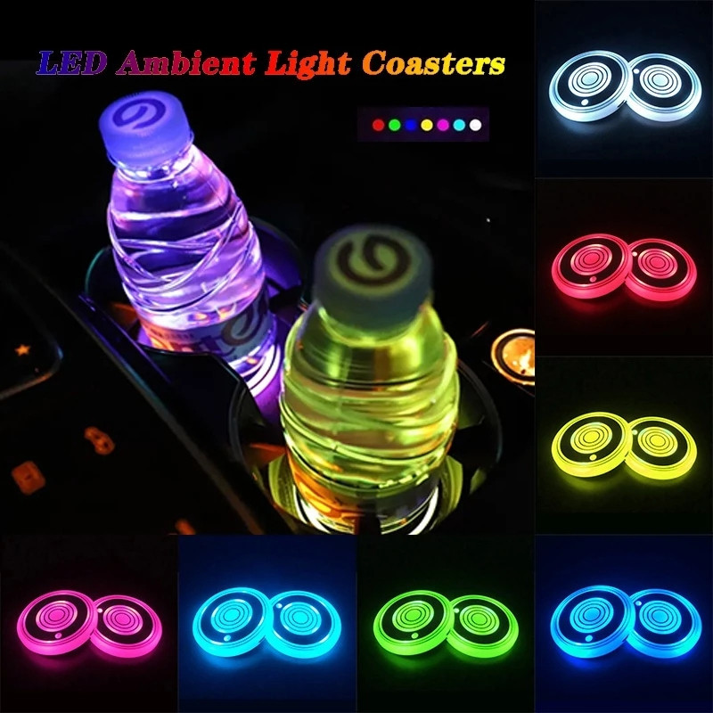 1PC Universal Carro LED Suporte De Copo Tapetes Luz Porta-Copos Do Garrafa Atmosfera Constelação Backlight Lâmpada 7 Cor