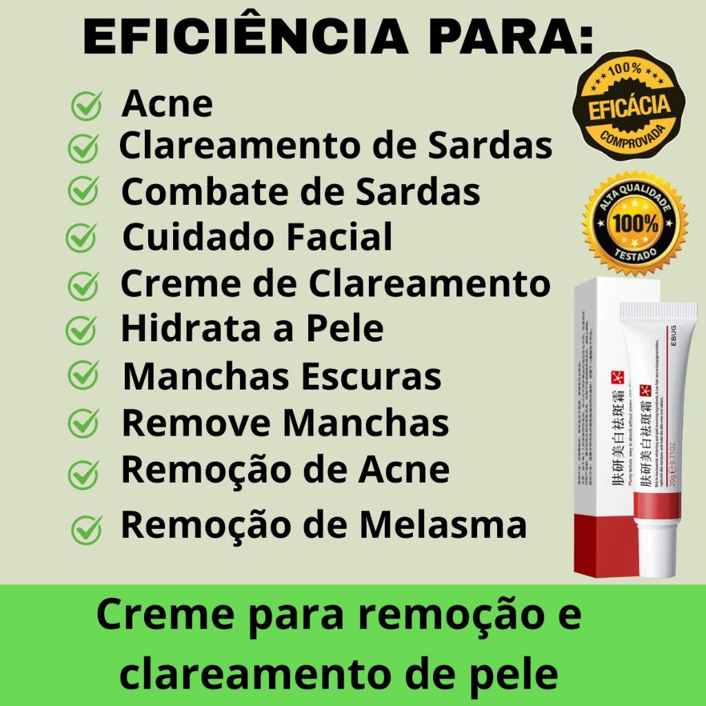 Creme Clareador Para Remover Melasma/Melanina/Removedor De Pele escura