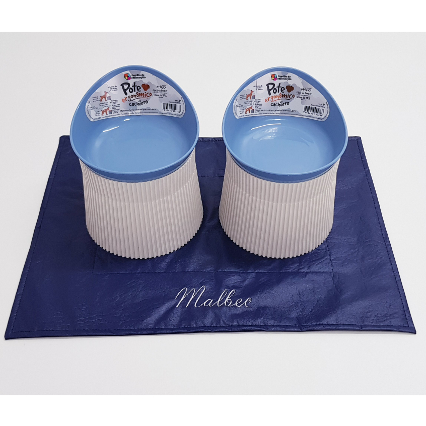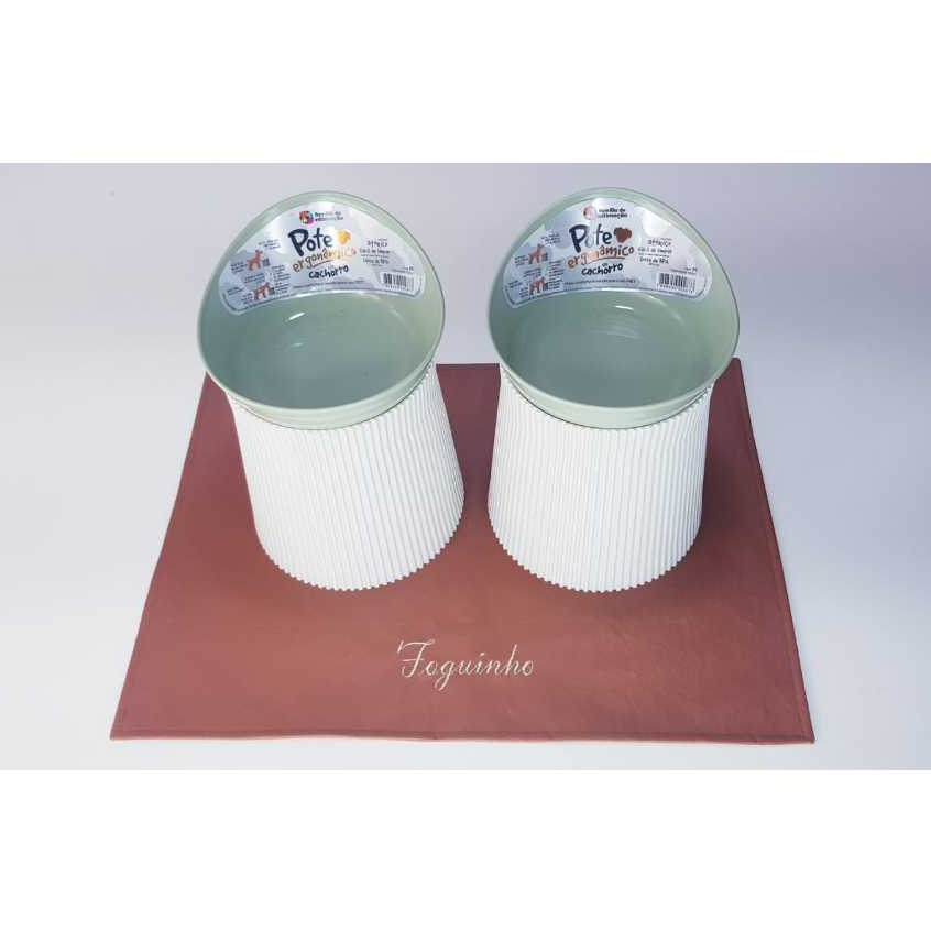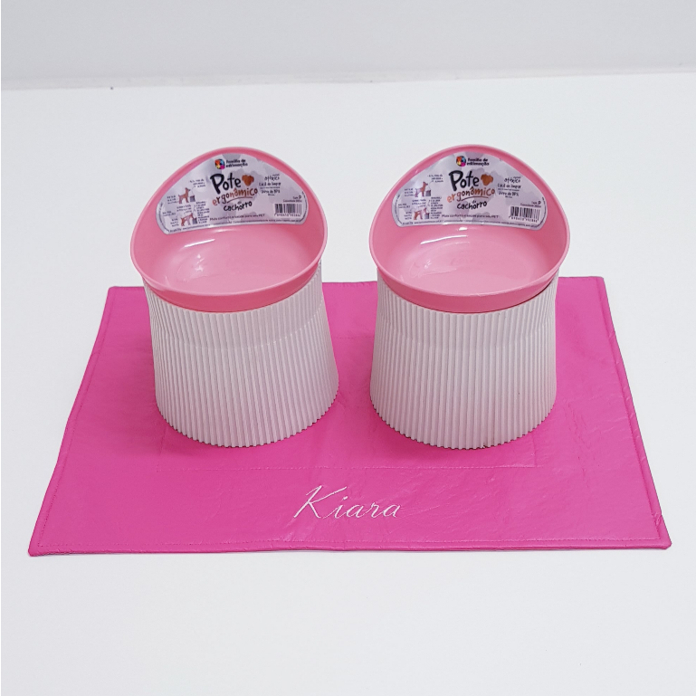 2 Comedouro Elevado Vasilha Alto Postura Pet 390ml Cachorro + GRATÍS Jogo Americano Personalizado