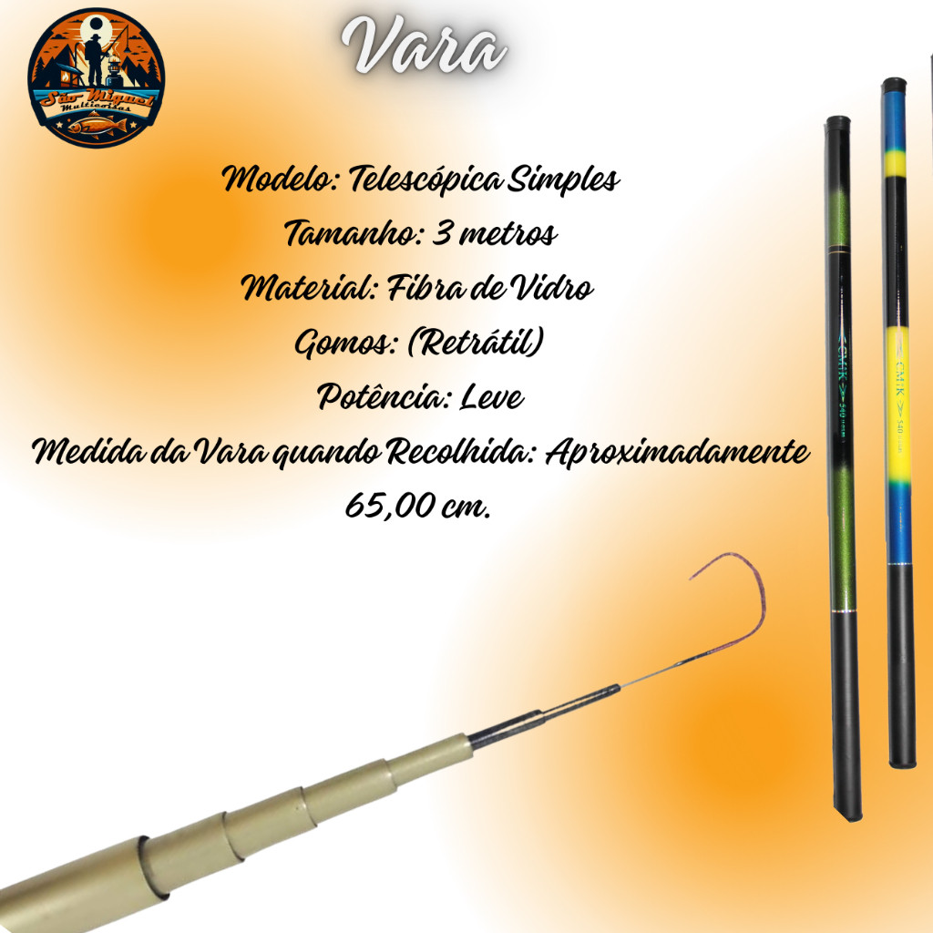 Kit Pesca 3 Varas Telescópica 3 Mts Estojo Acessórios boia anzol chumbada isca sino snap