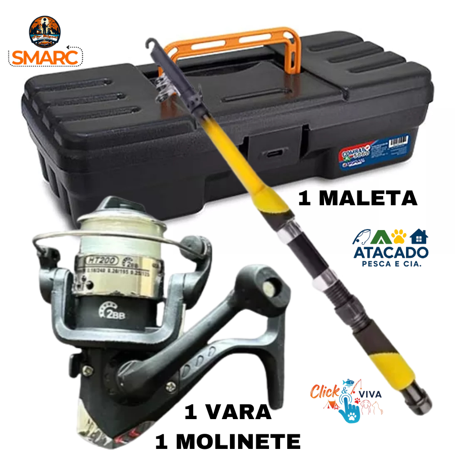 Kit Pesca Completo com Vara Molinete Maleta com Acessórios e Alicate Pega Peixe