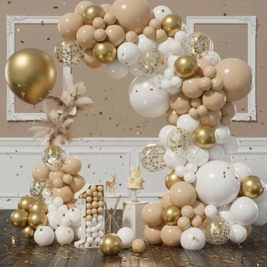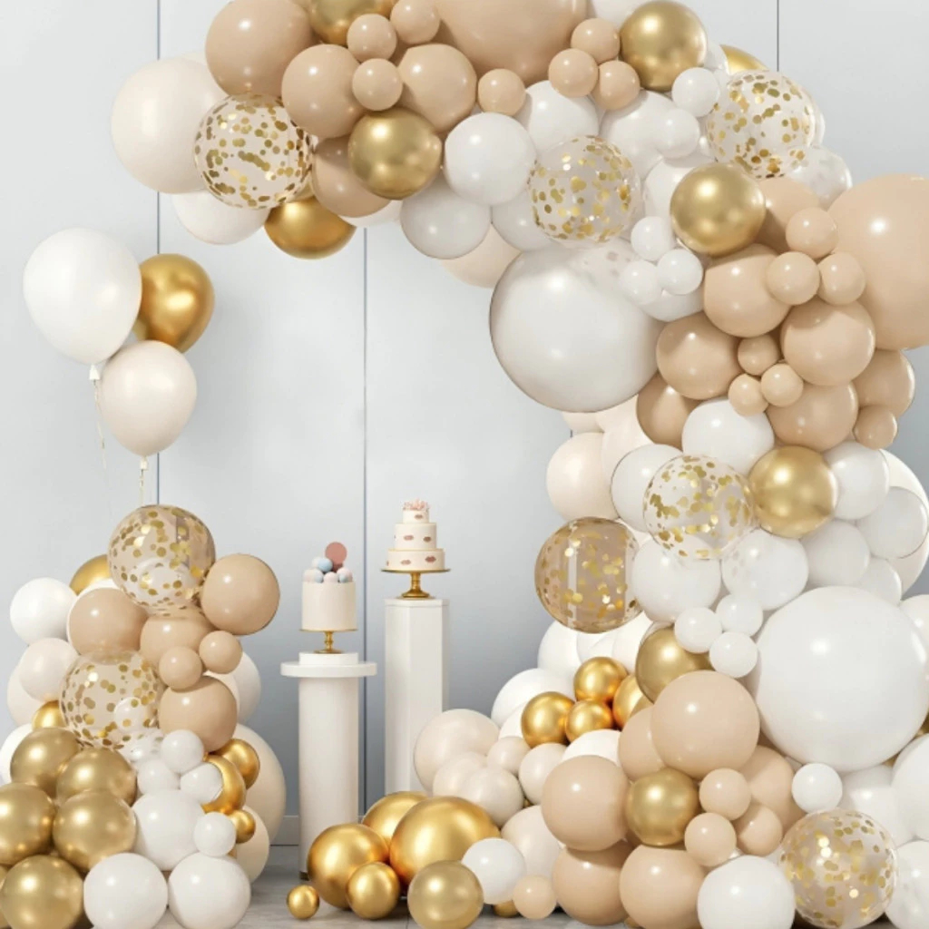 Kit 150 Balões Bege + Branco + Dourado N°5 e 9 Metalizado - Balão Bexiga Liso/Cromado Para Festas